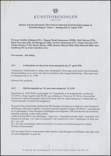 Bestyrelsesmødereferater i løsbladsprotokol side 1-7, år 1998.