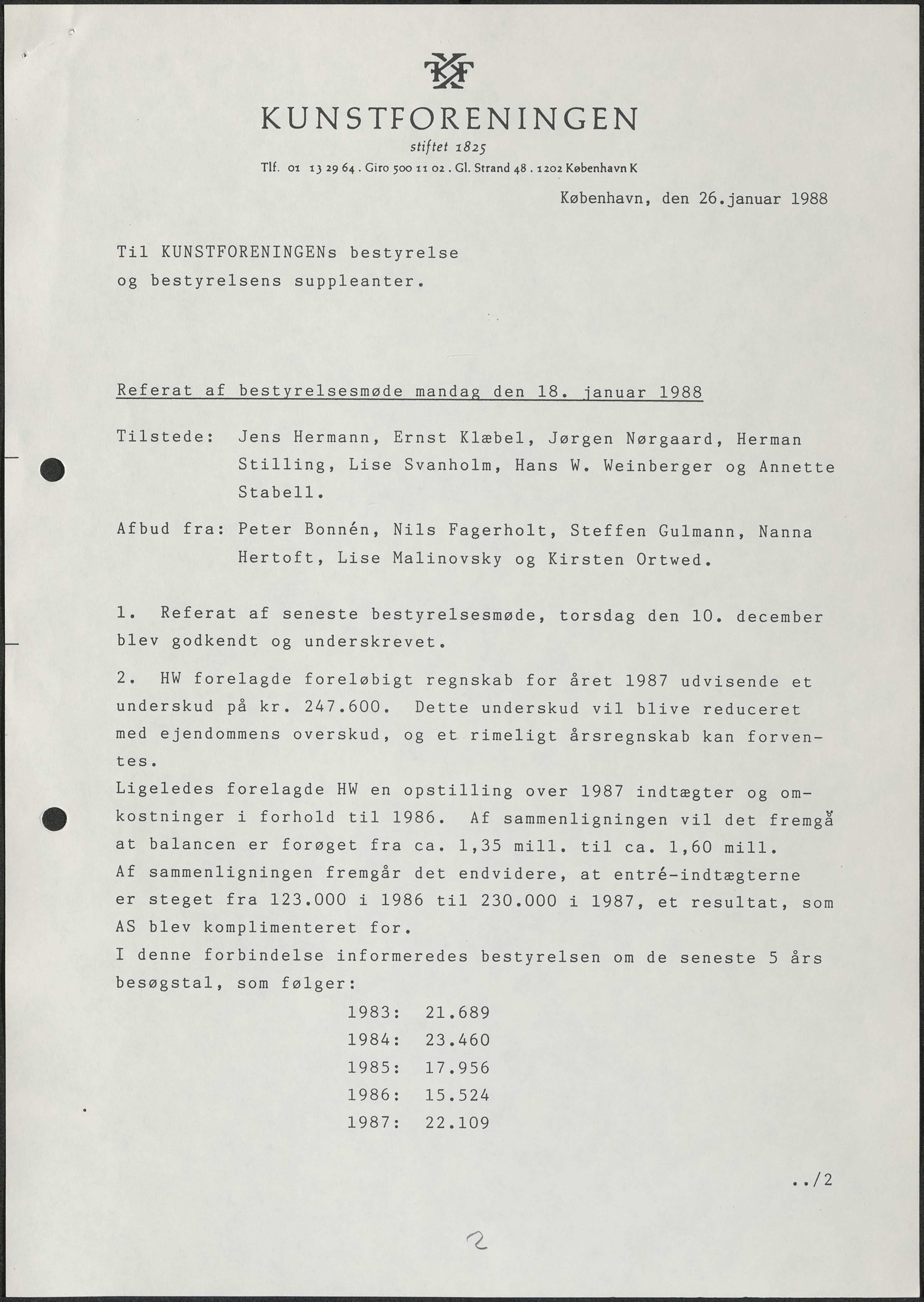 Side 2: De årlige entréindtægter er steget fra 123.000 kroner i 1986 til 230.000 kroner i 1987.