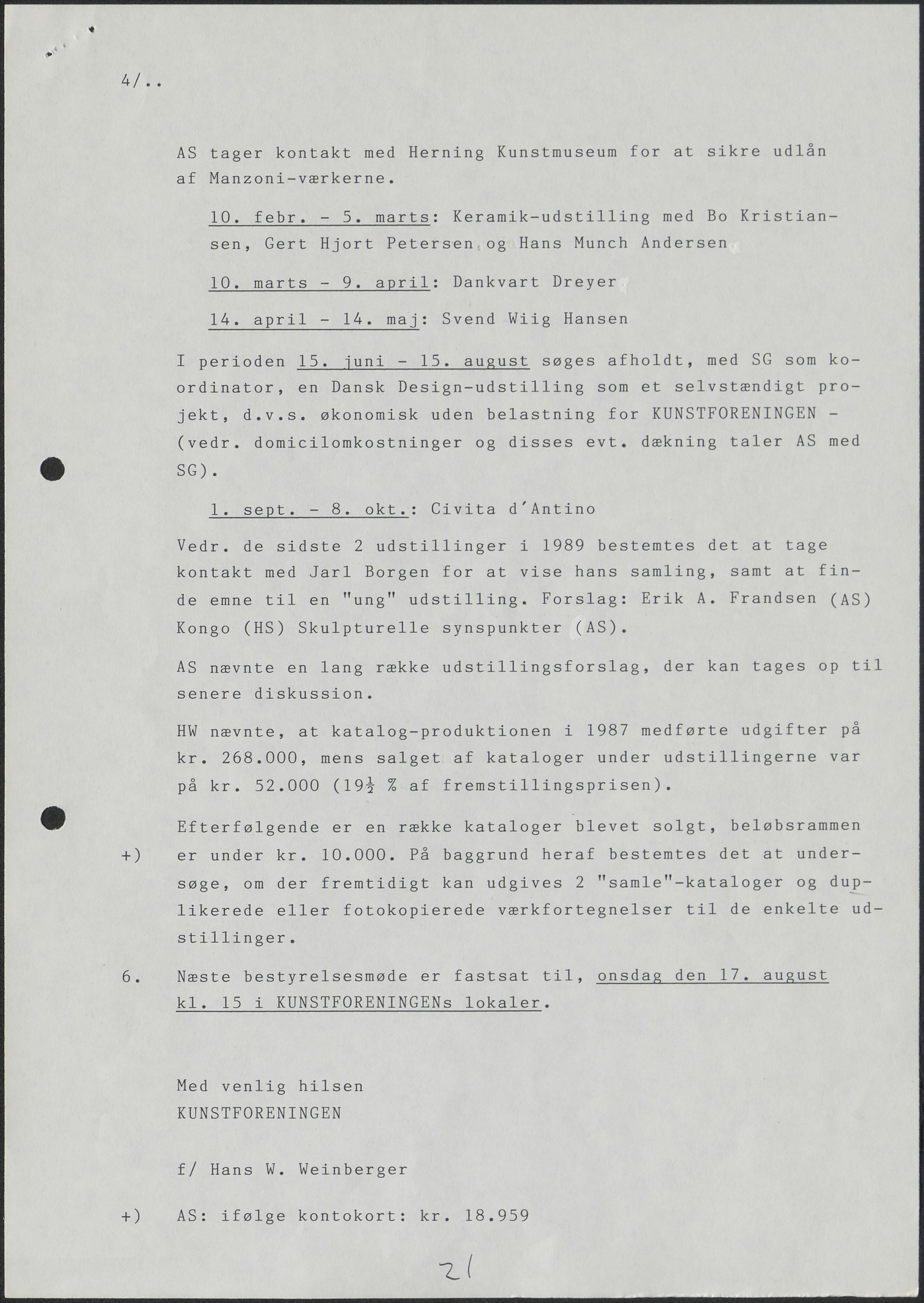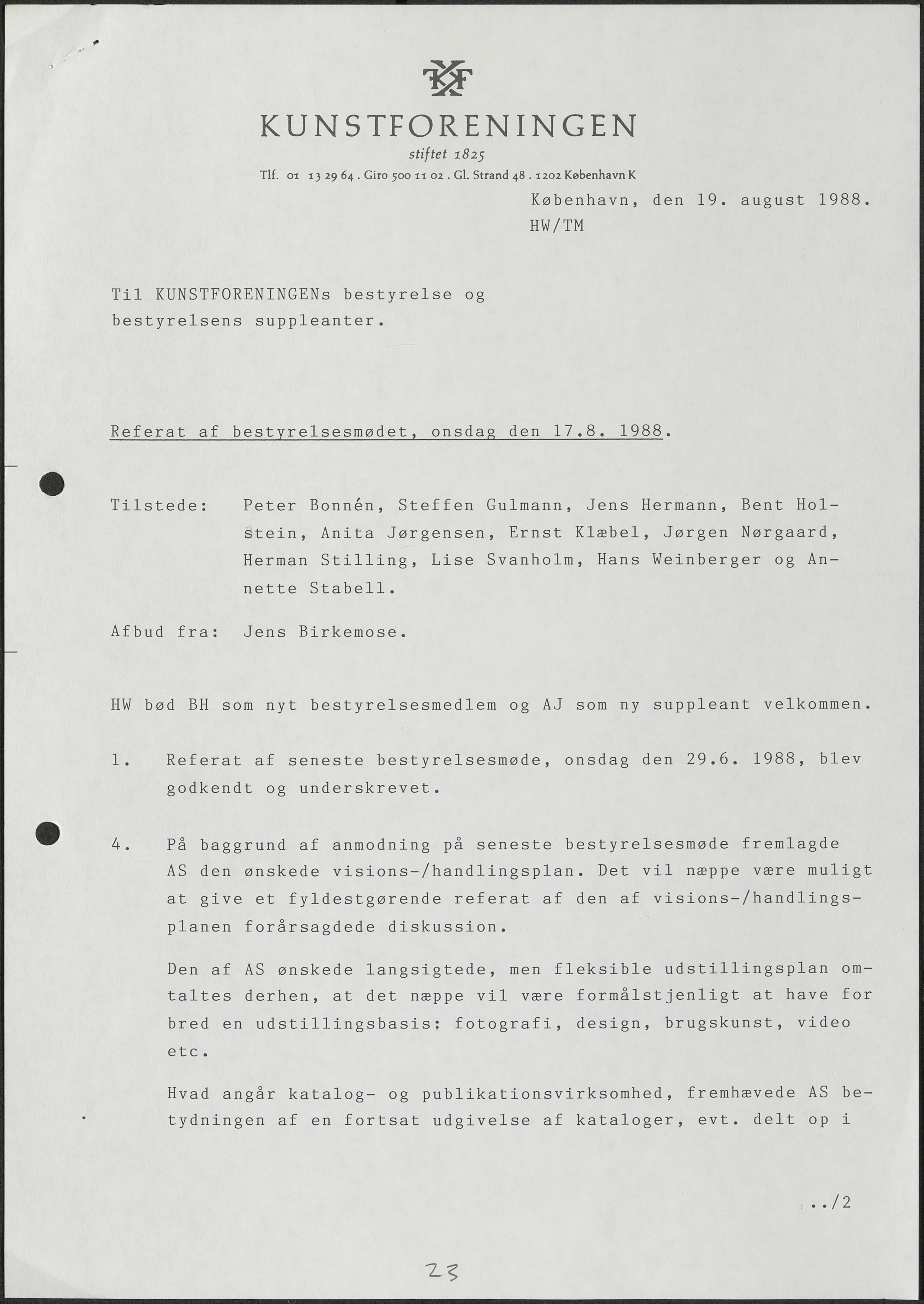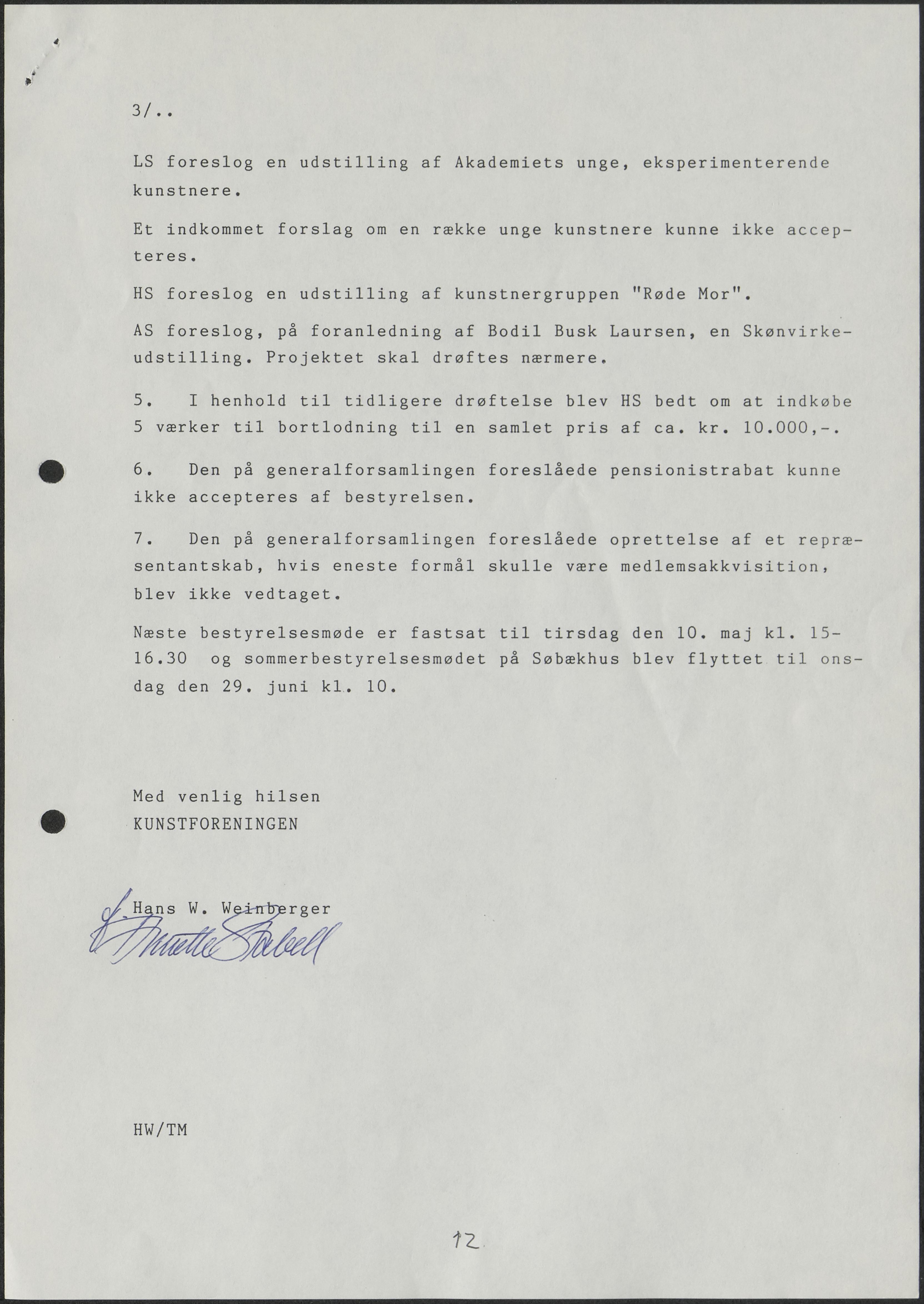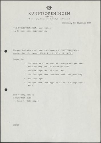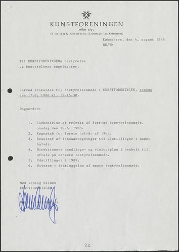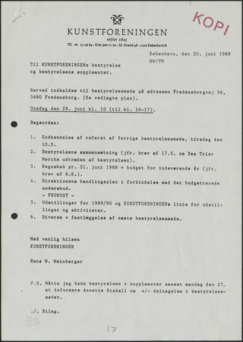Side 11: Kunstforeningens virke i sommermånederne drøftes.