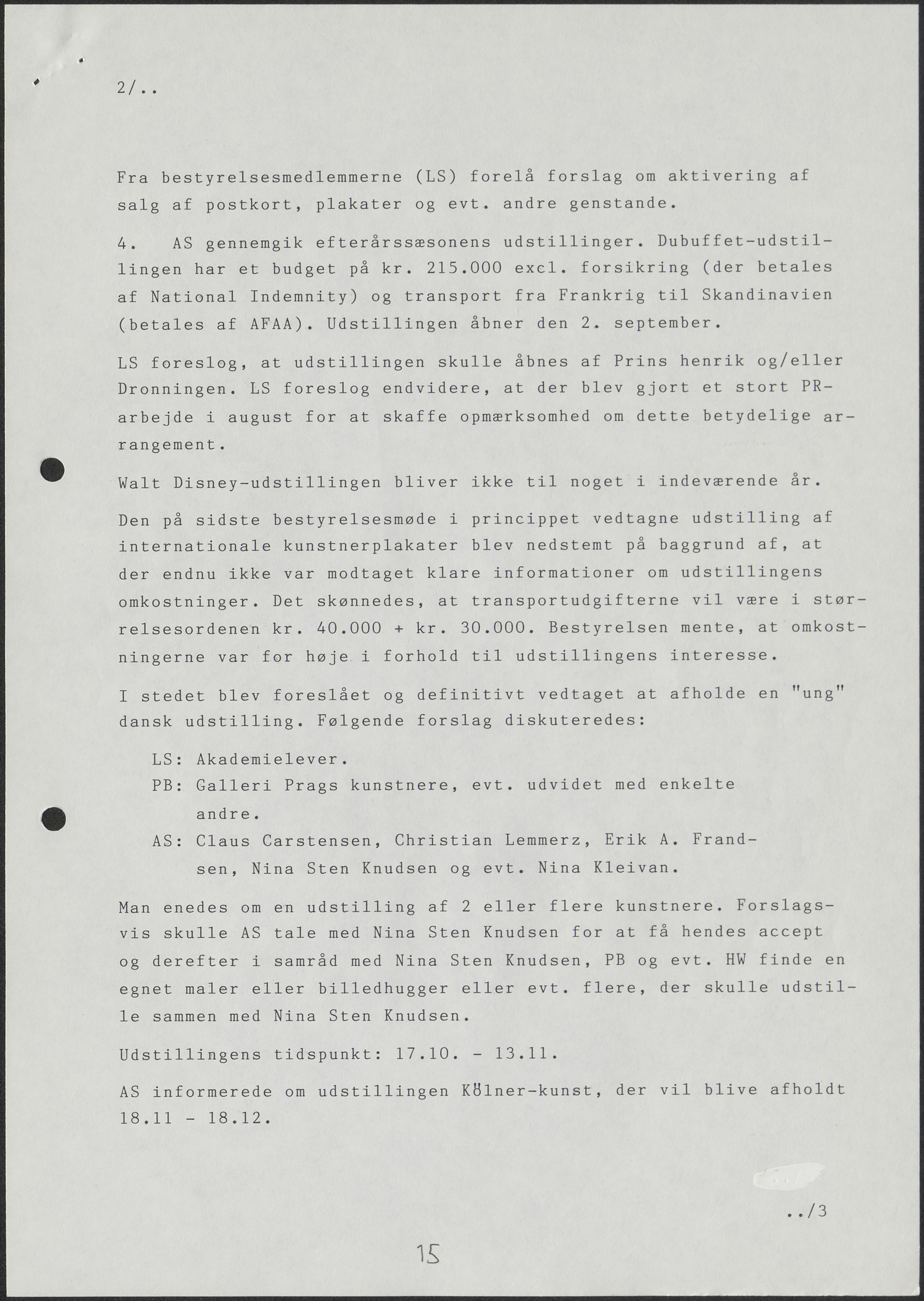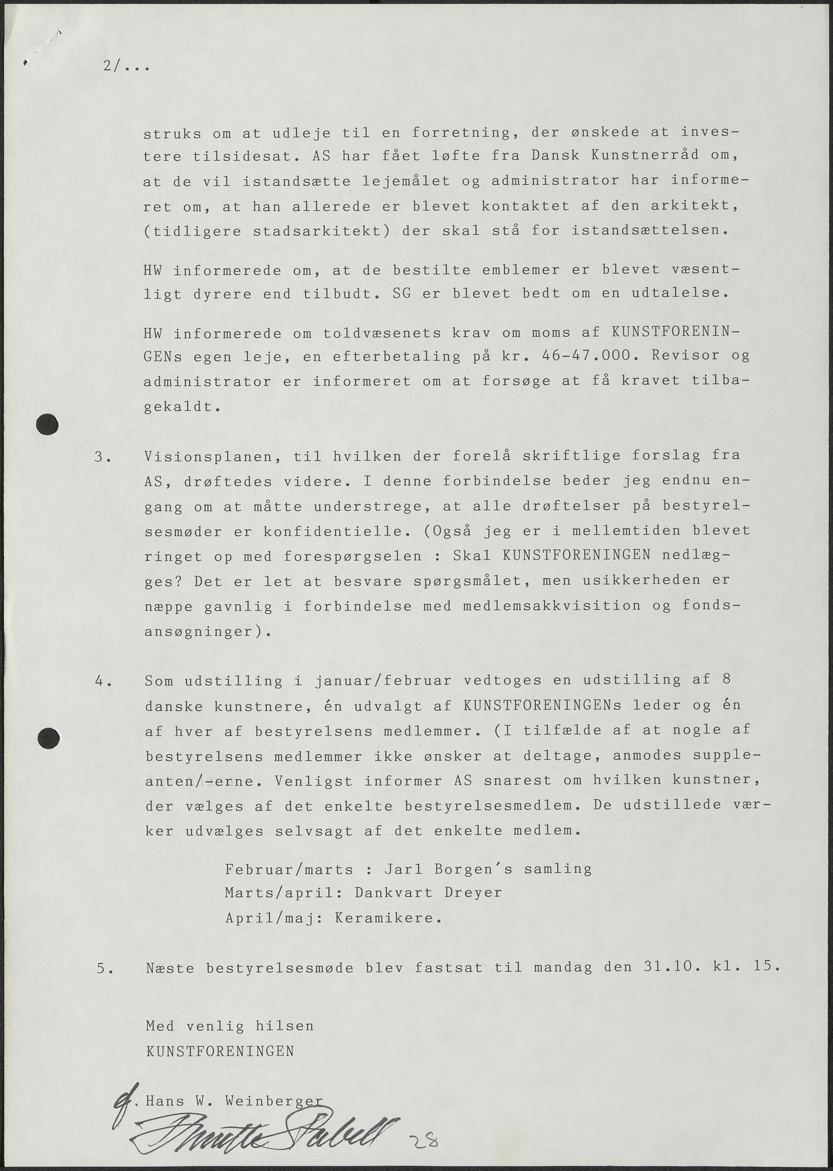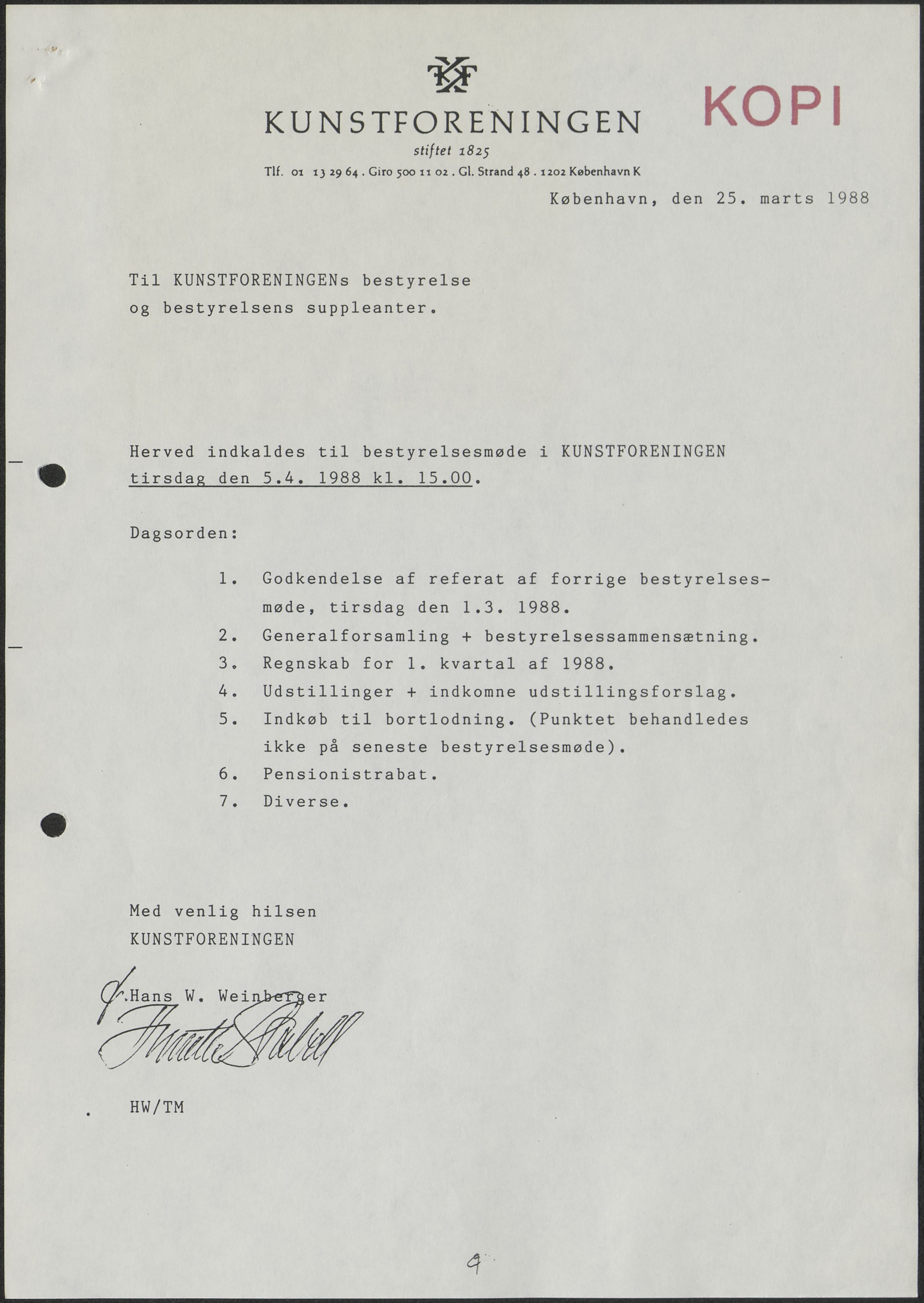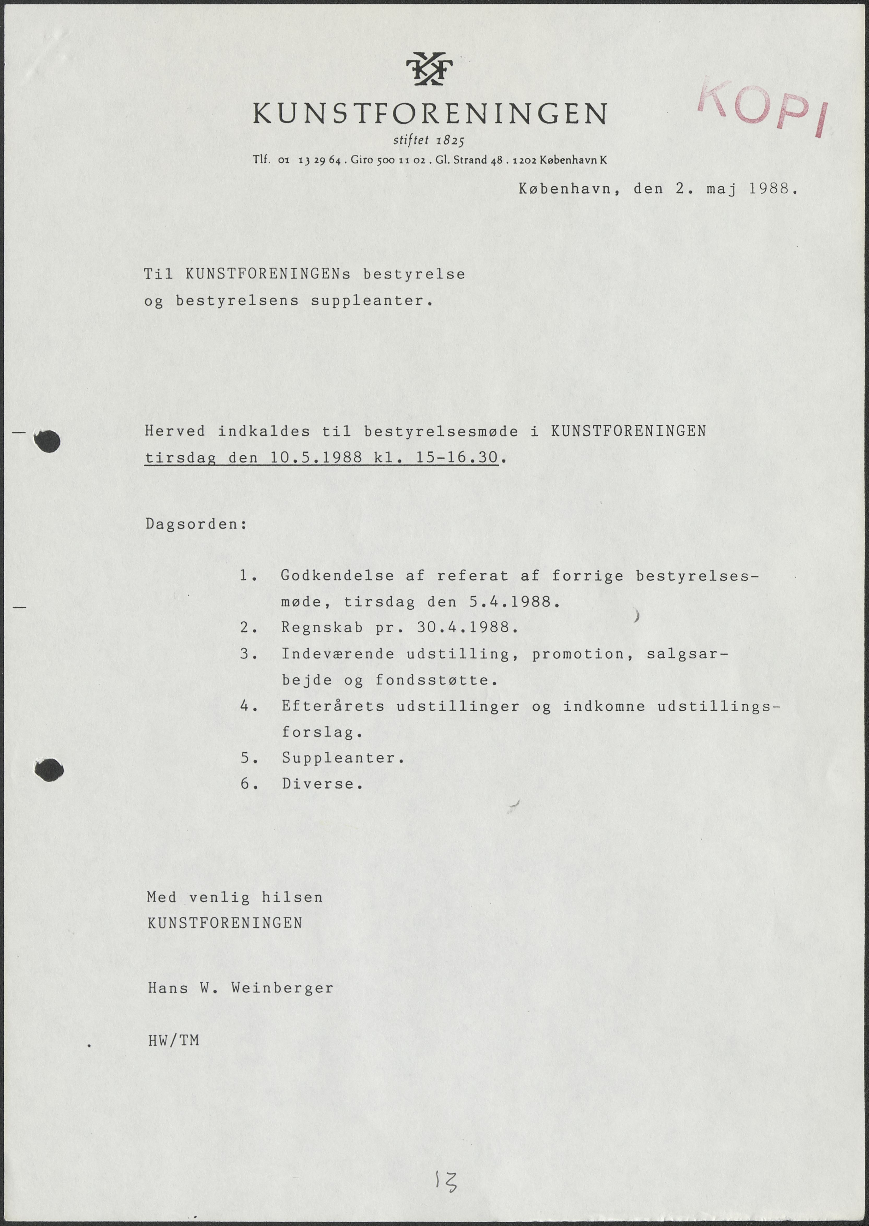 Side 11: Kunstforeningens virke i sommermånederne drøftes.