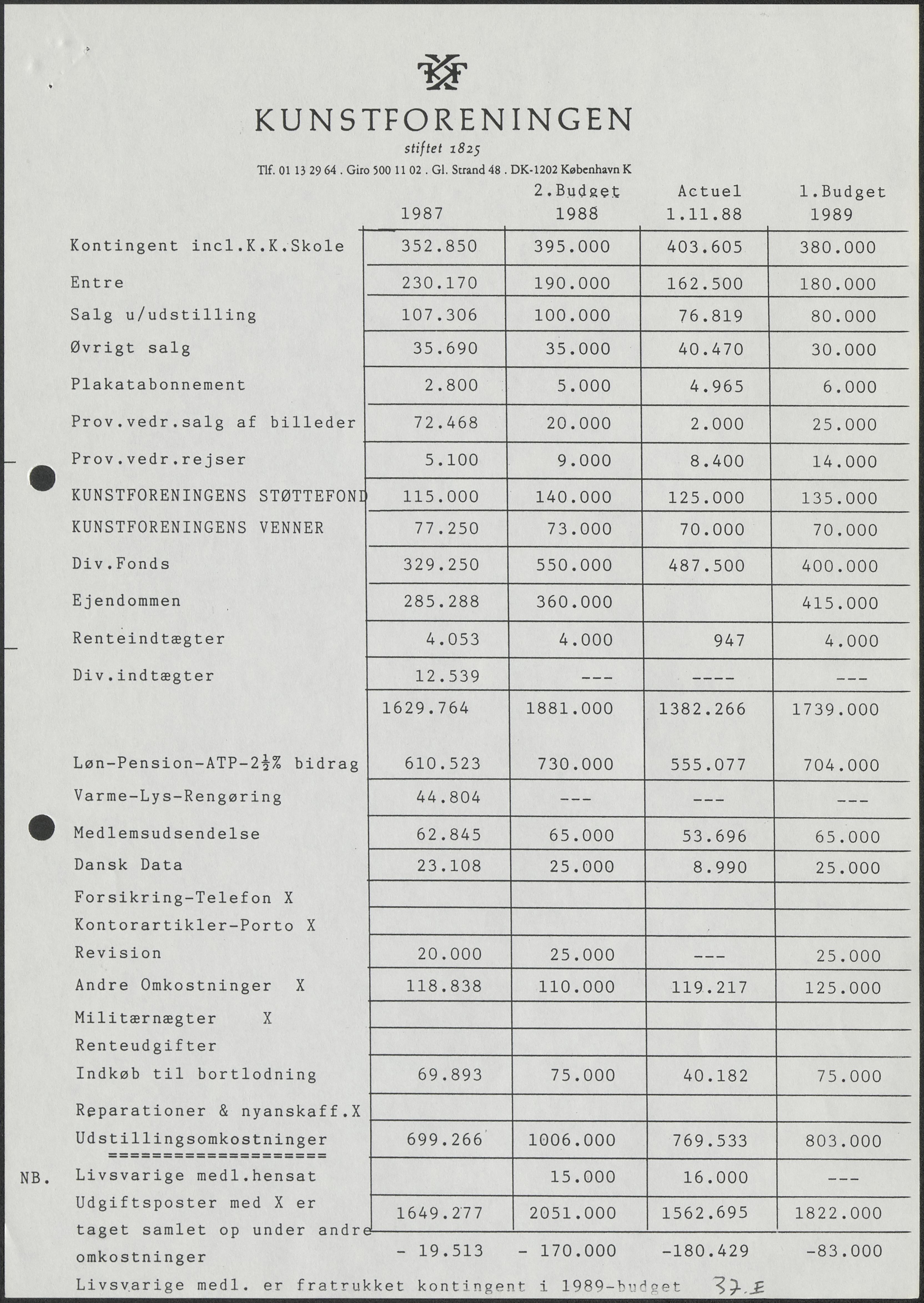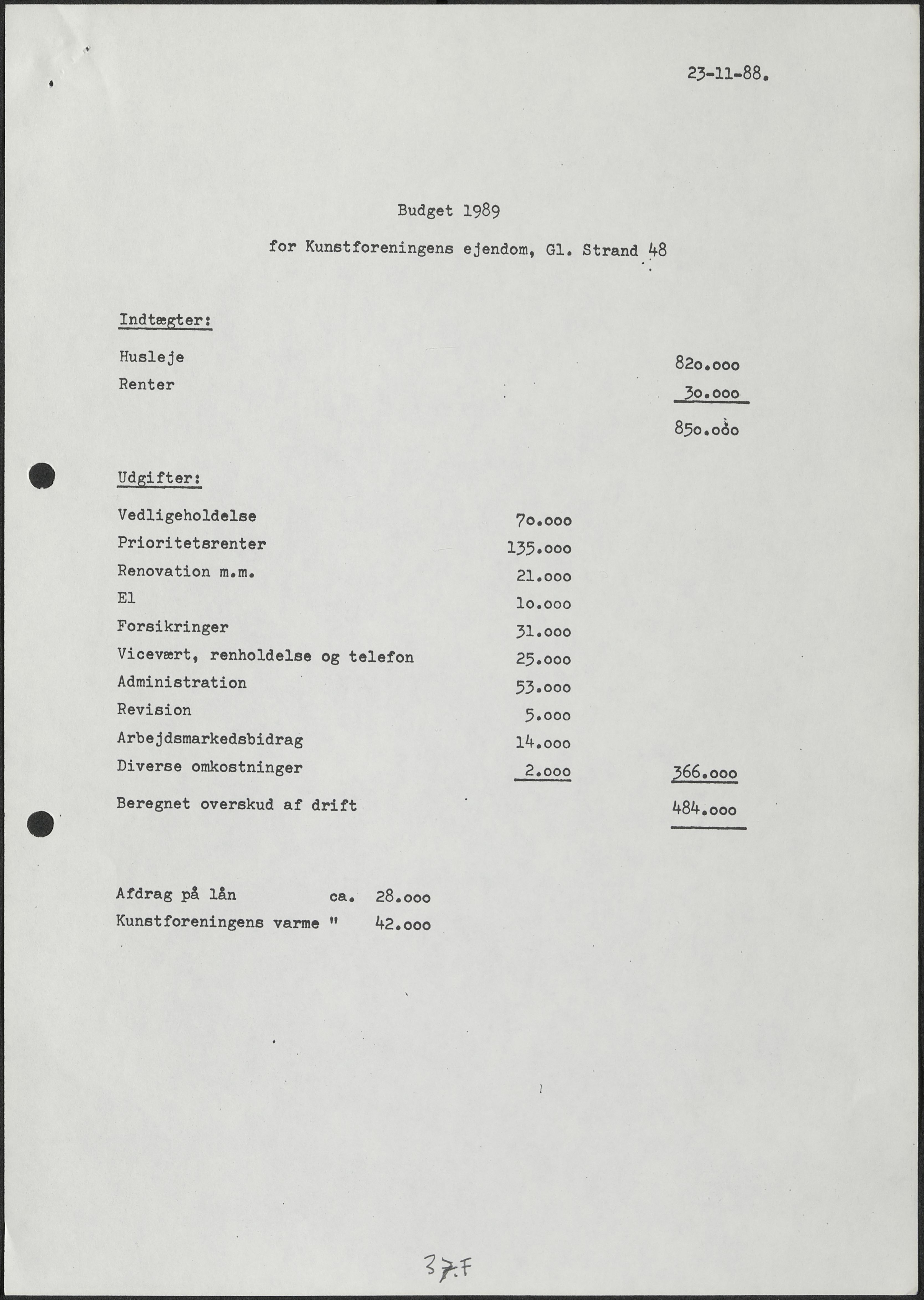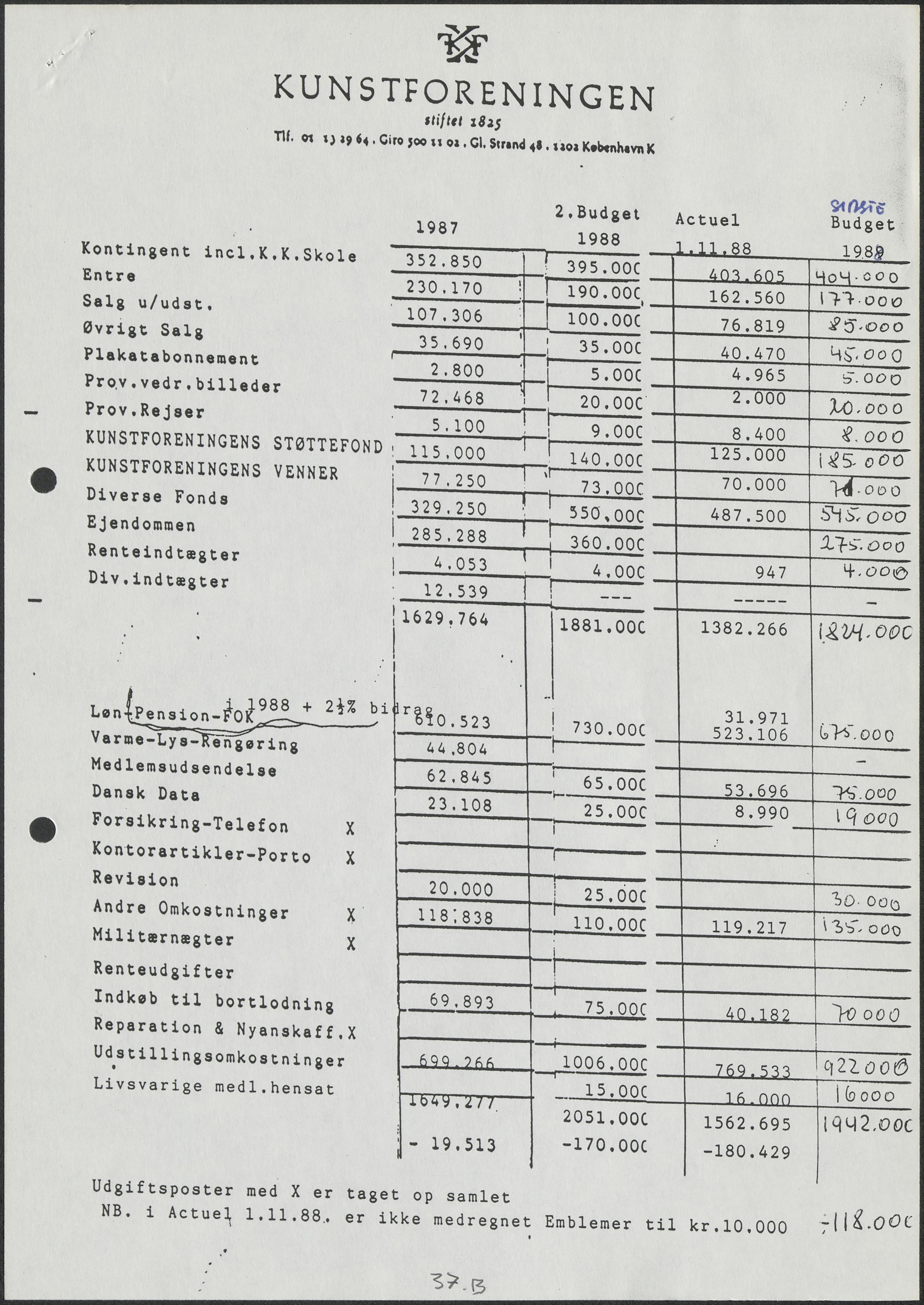 Side 37B+37E-37F: Revideret budget for 1988.