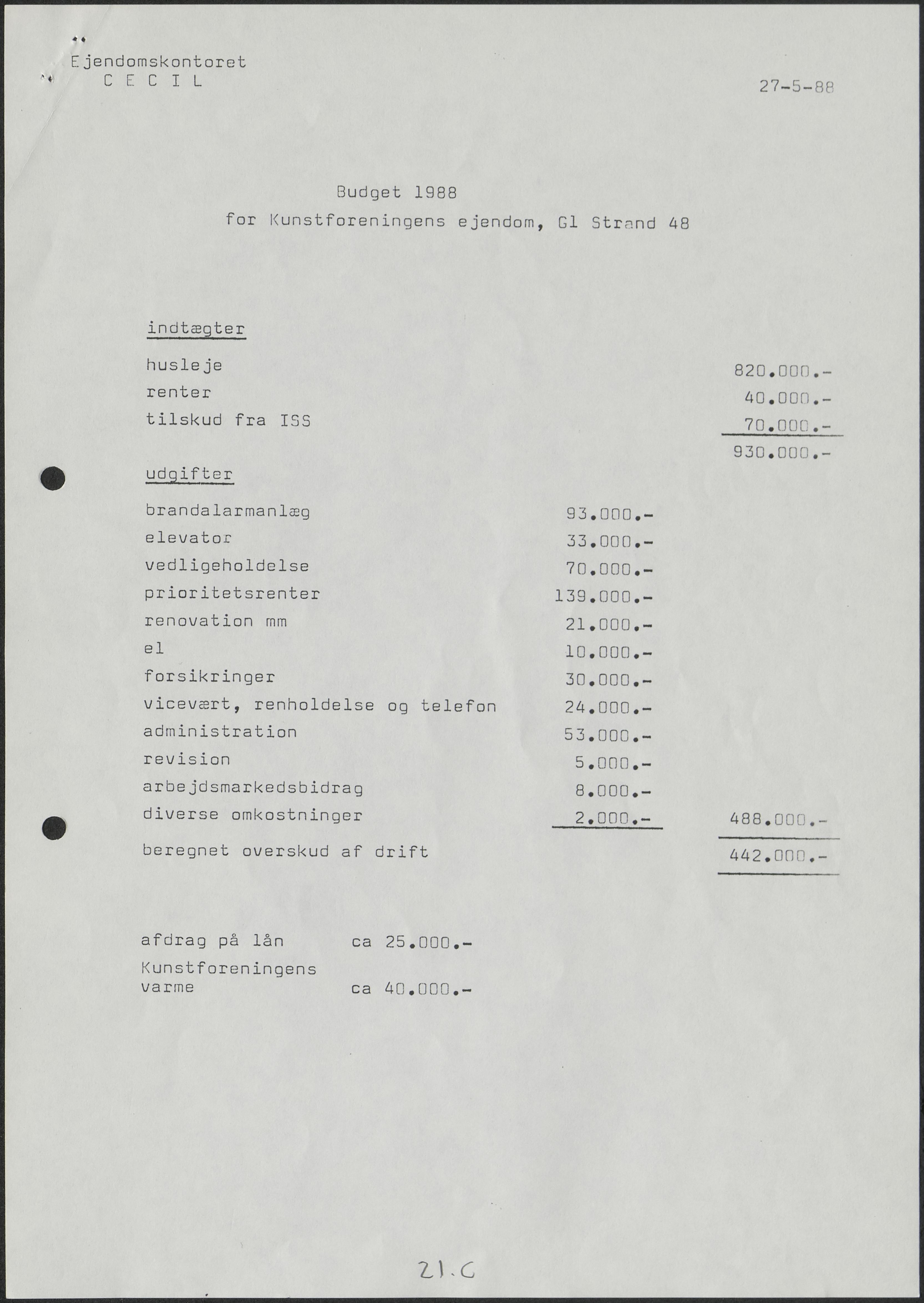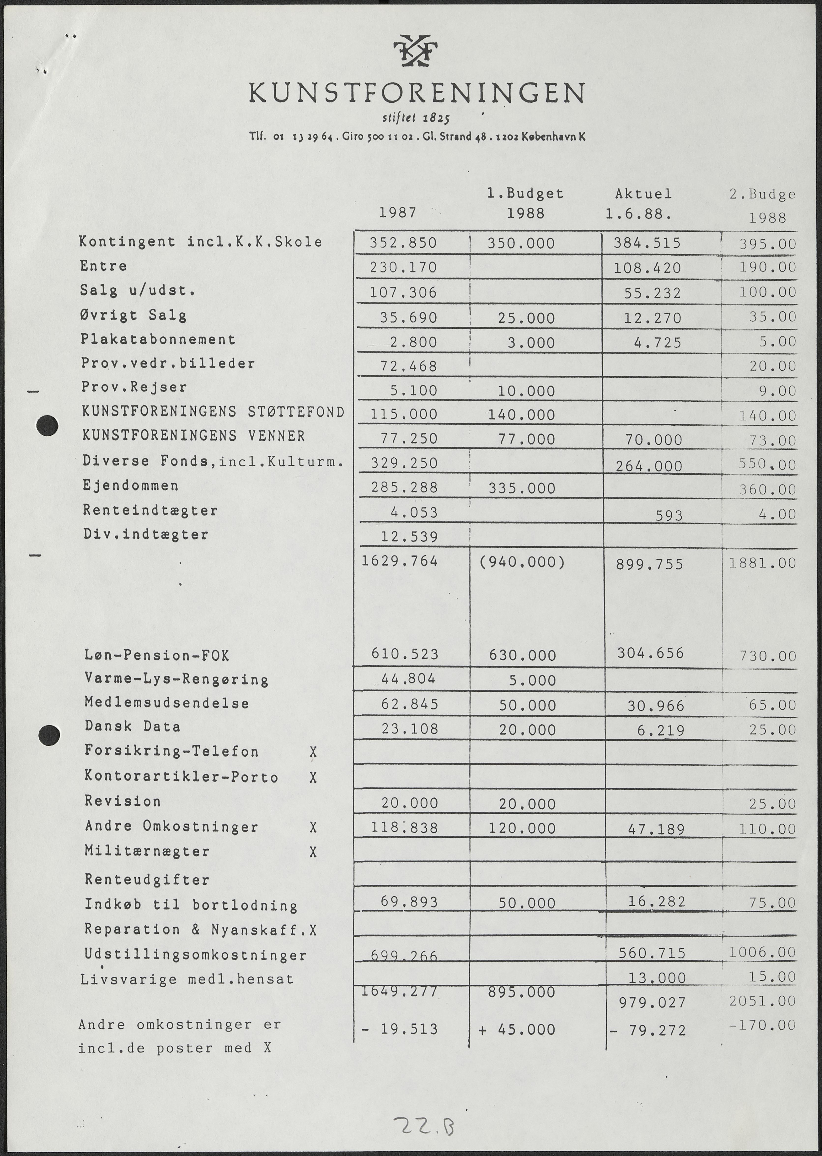 Side 22B-22D: Budget og regnskab for 1988.