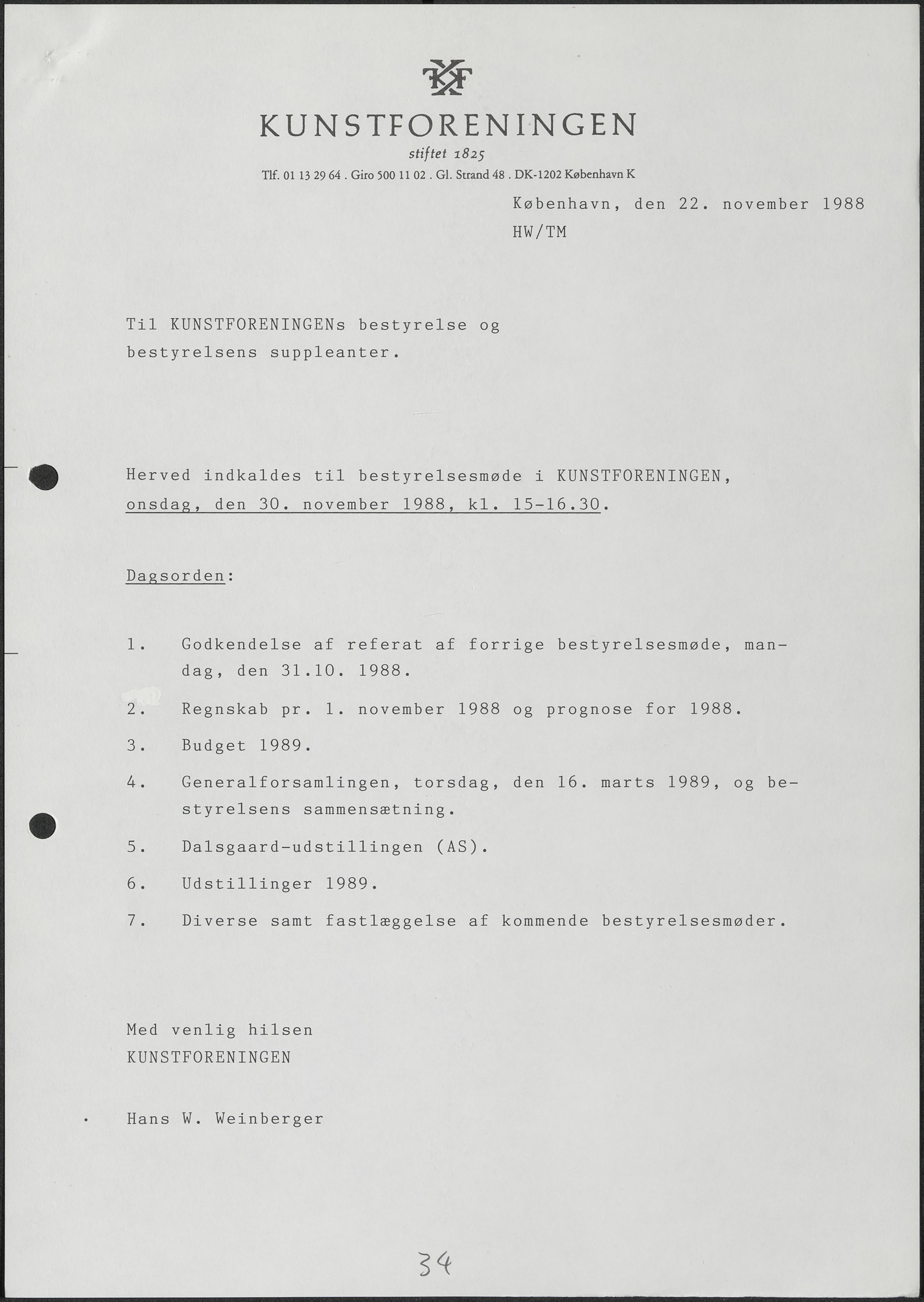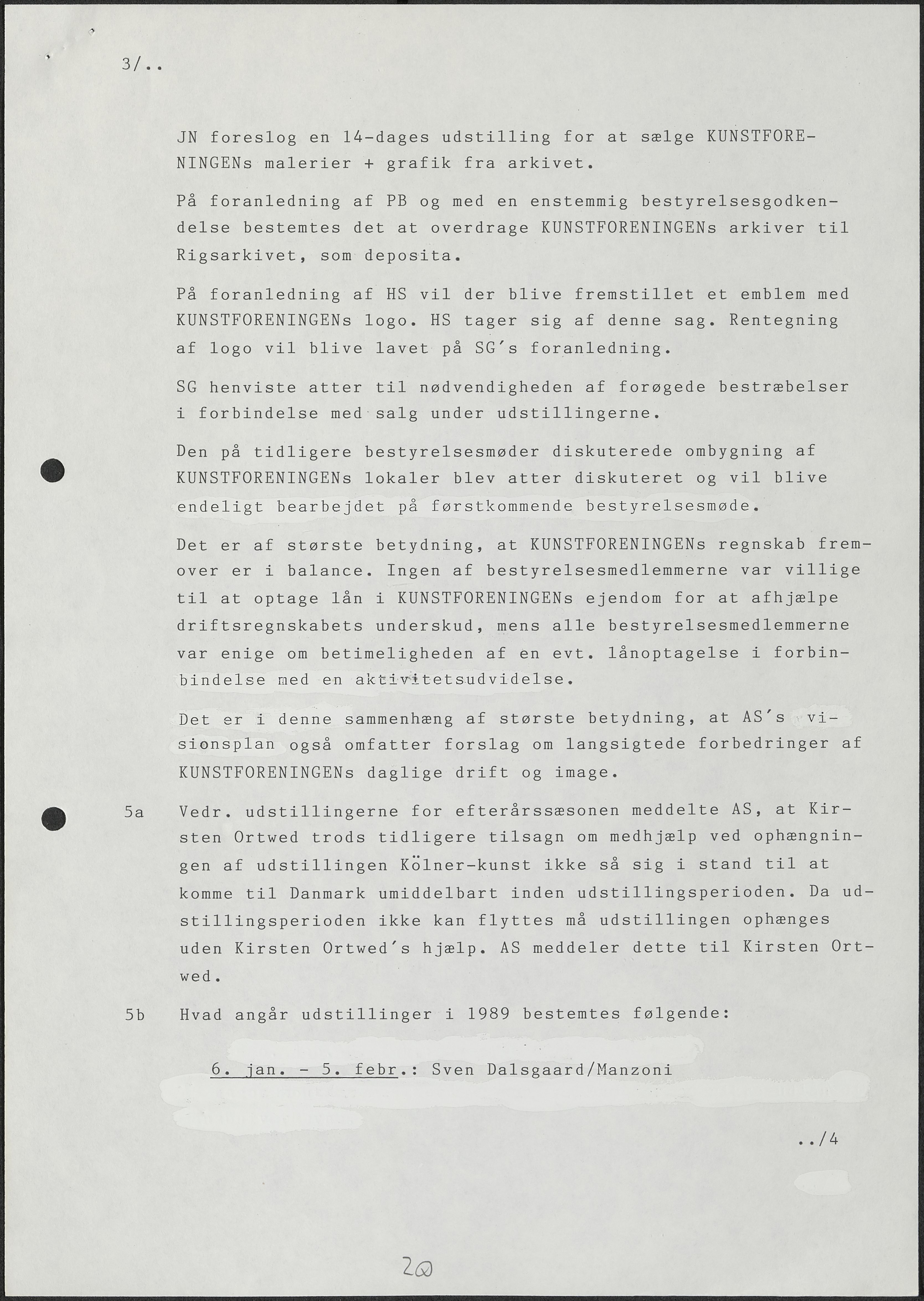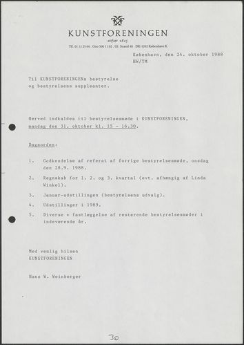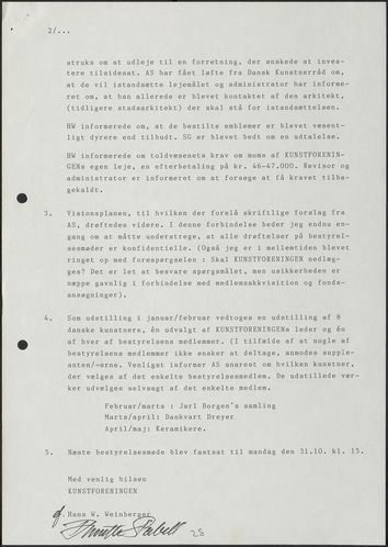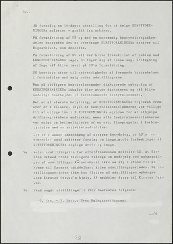 Side 20: Det besluttes at overdrage Kunstforeningens arkiver til Rigsarkivet.