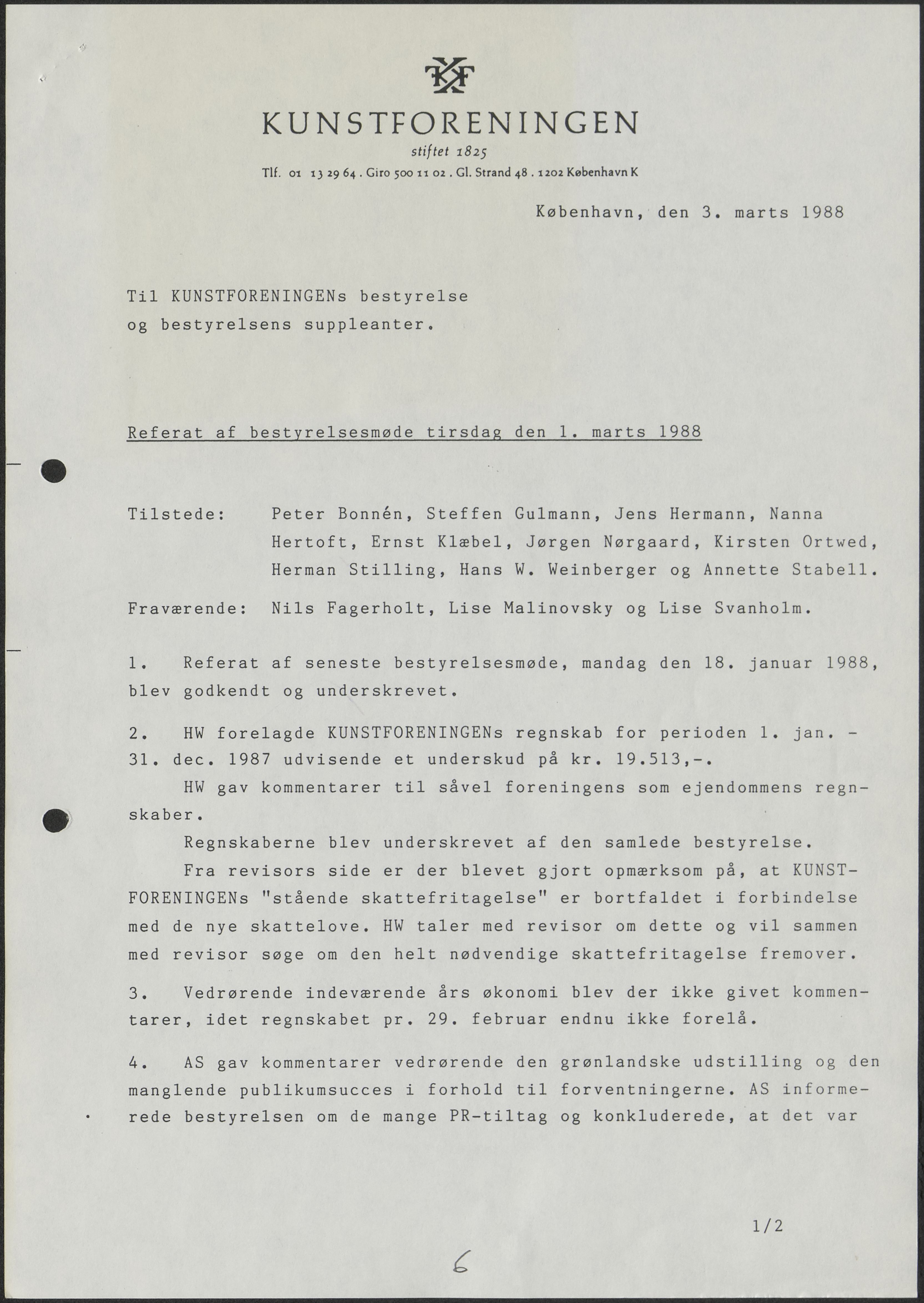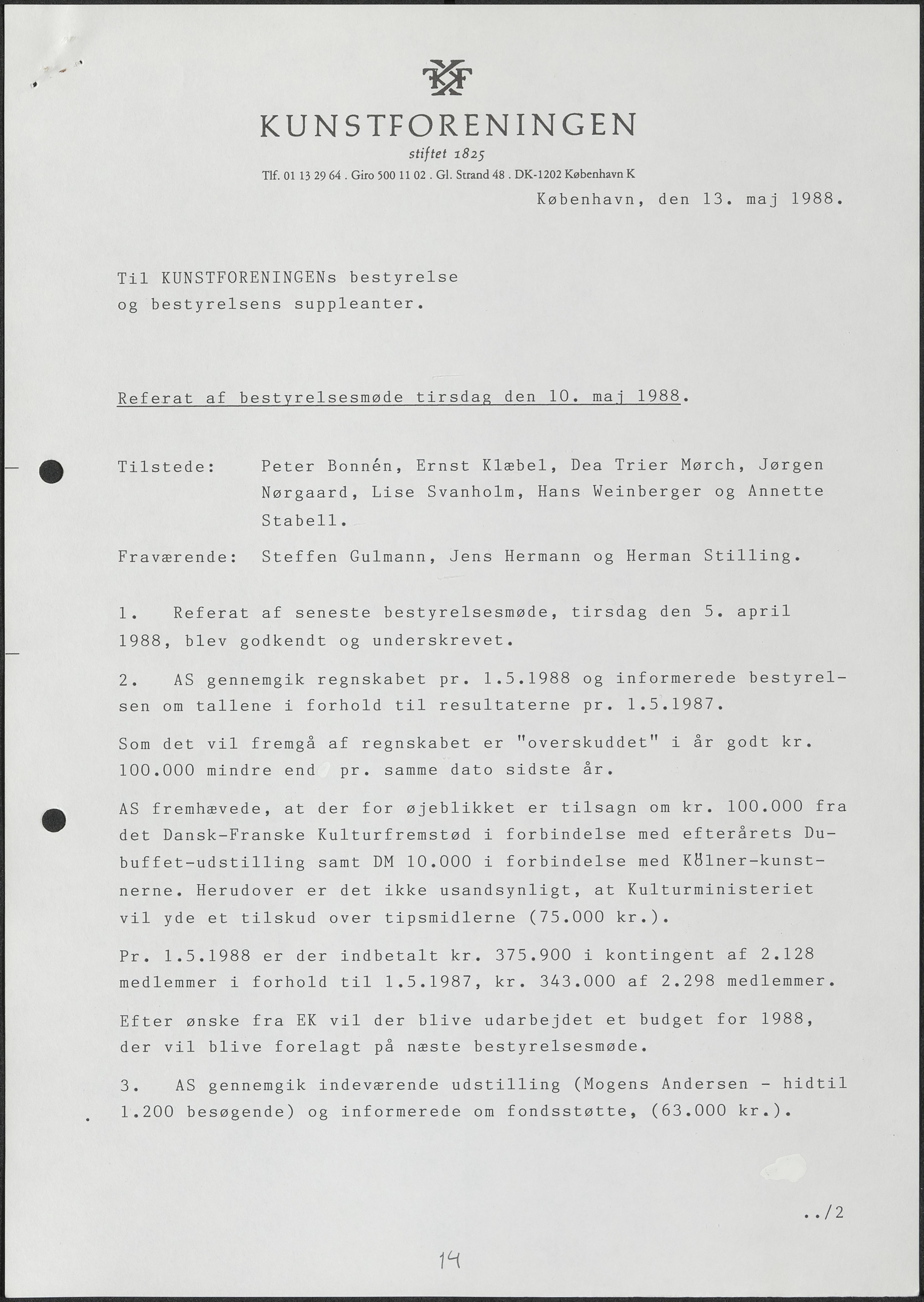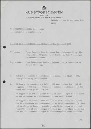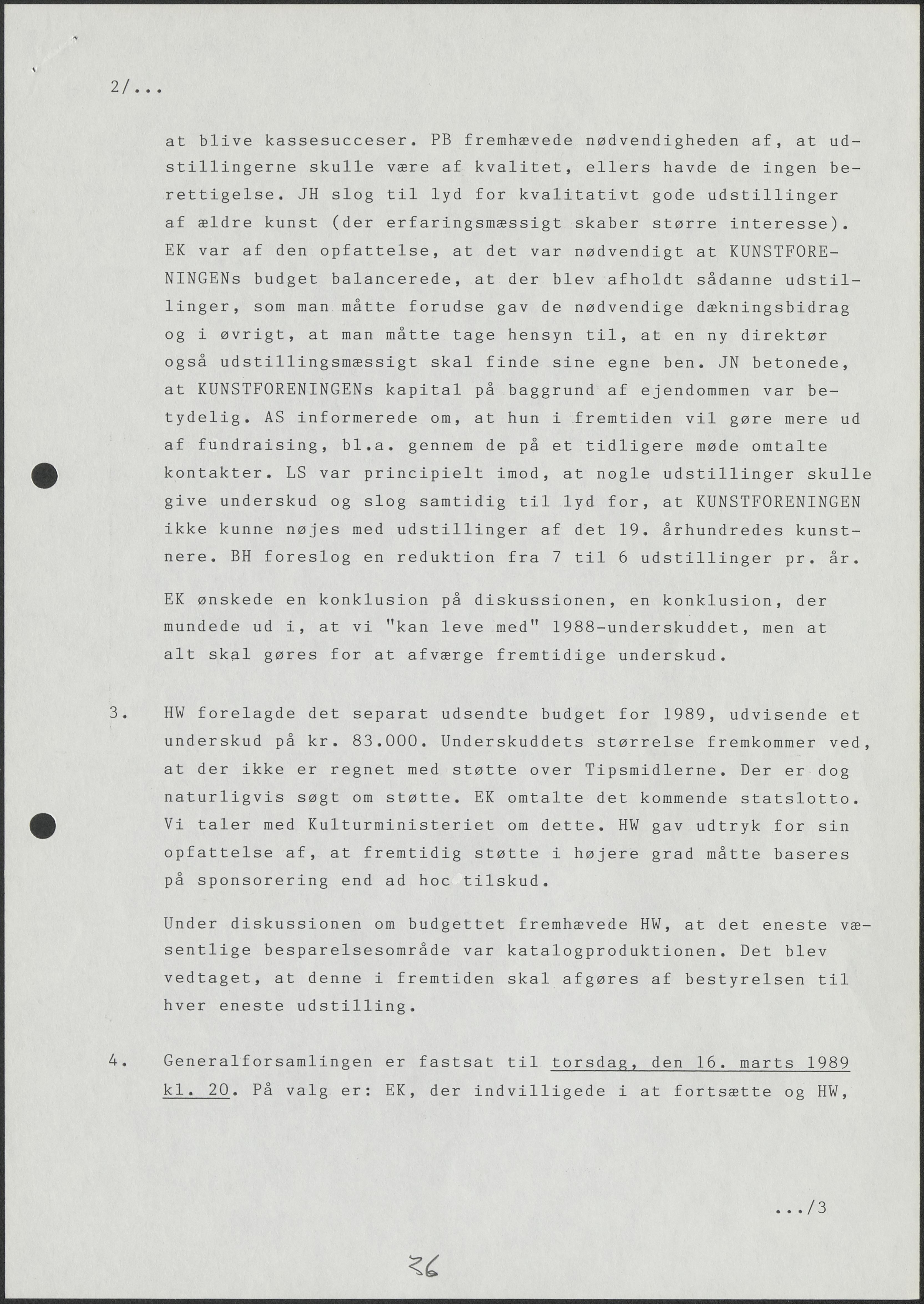 Side 36: Kunstforeningens økonomi diskuteres.
