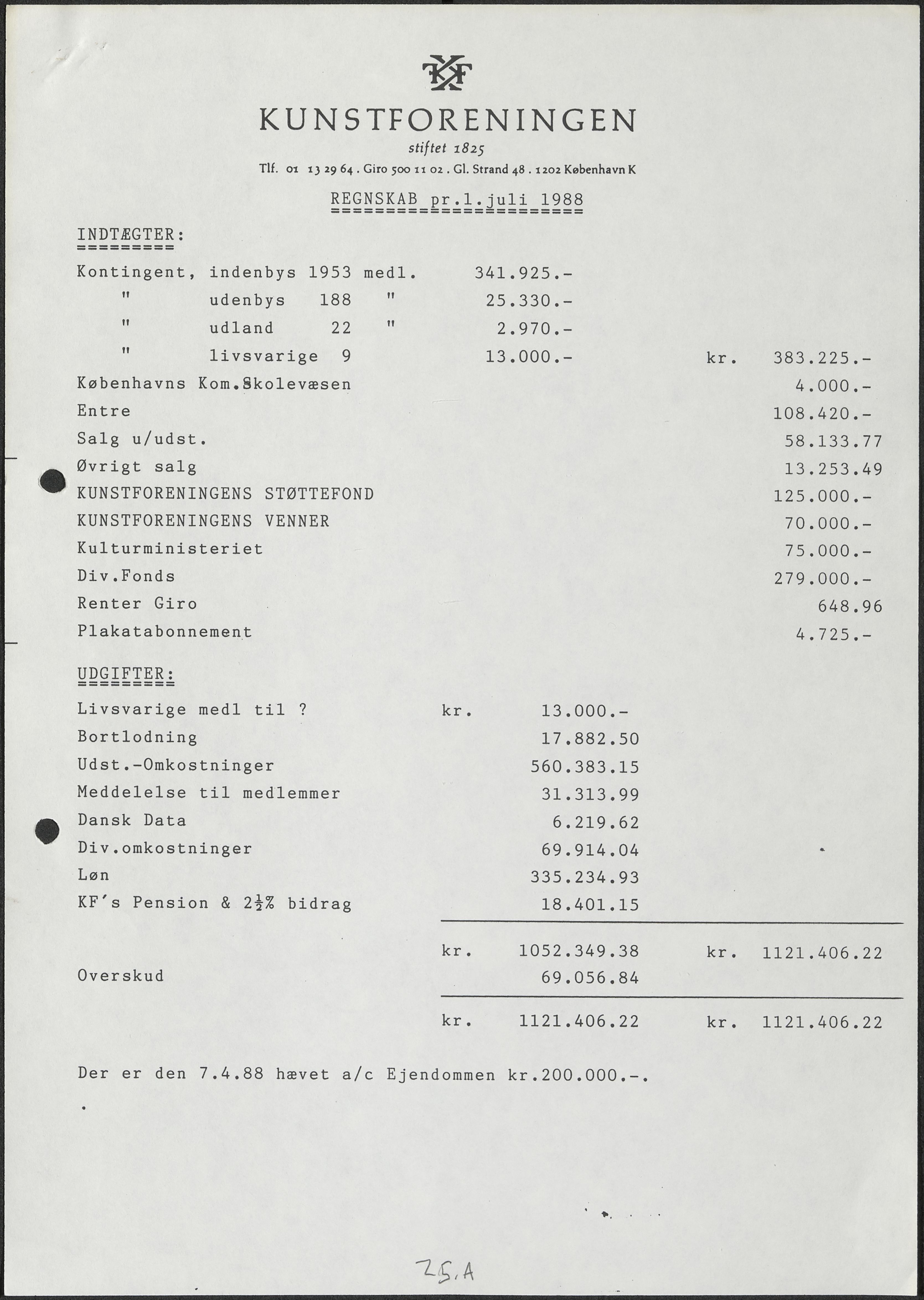 Side 25A: Regnskab for 1988.