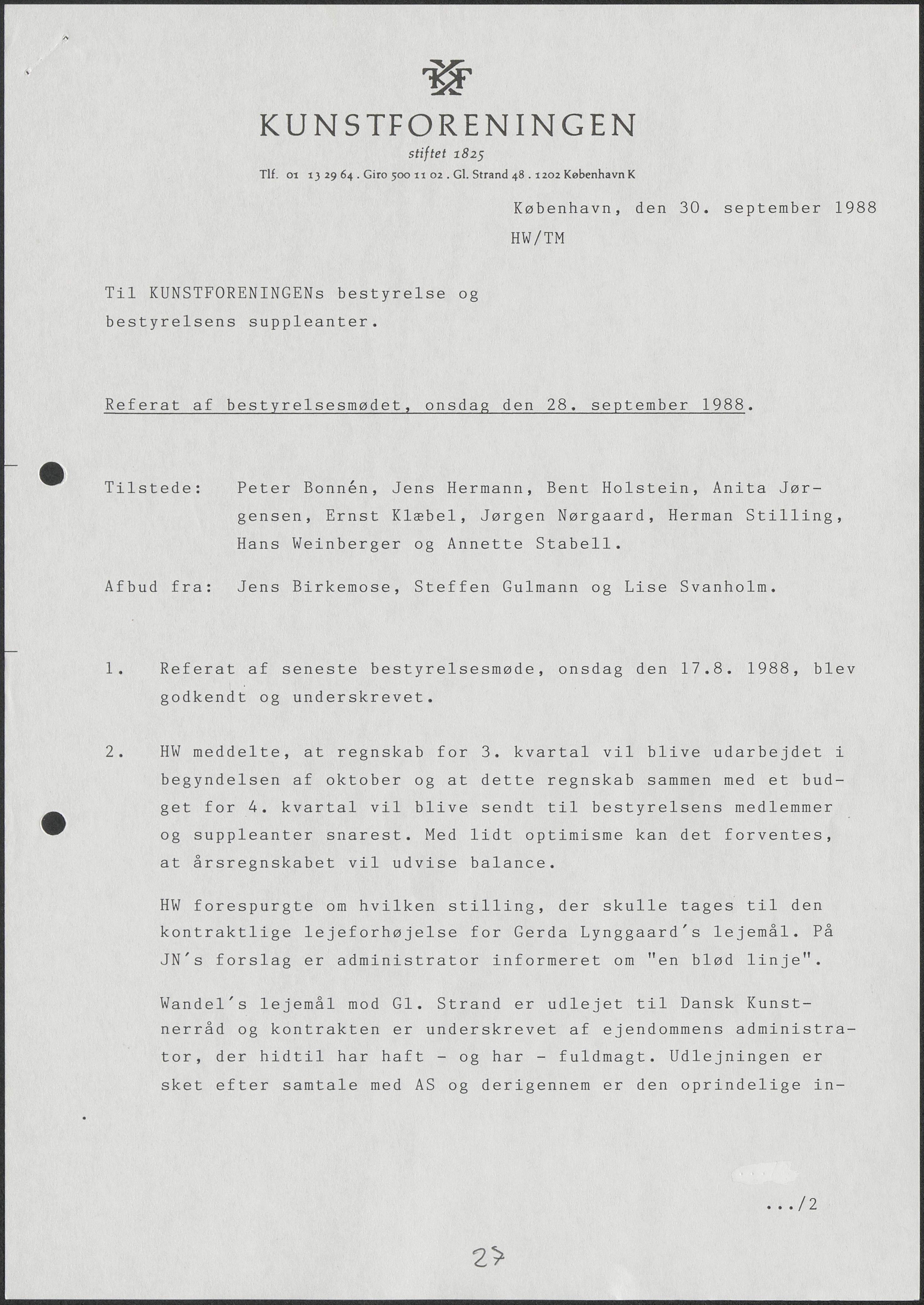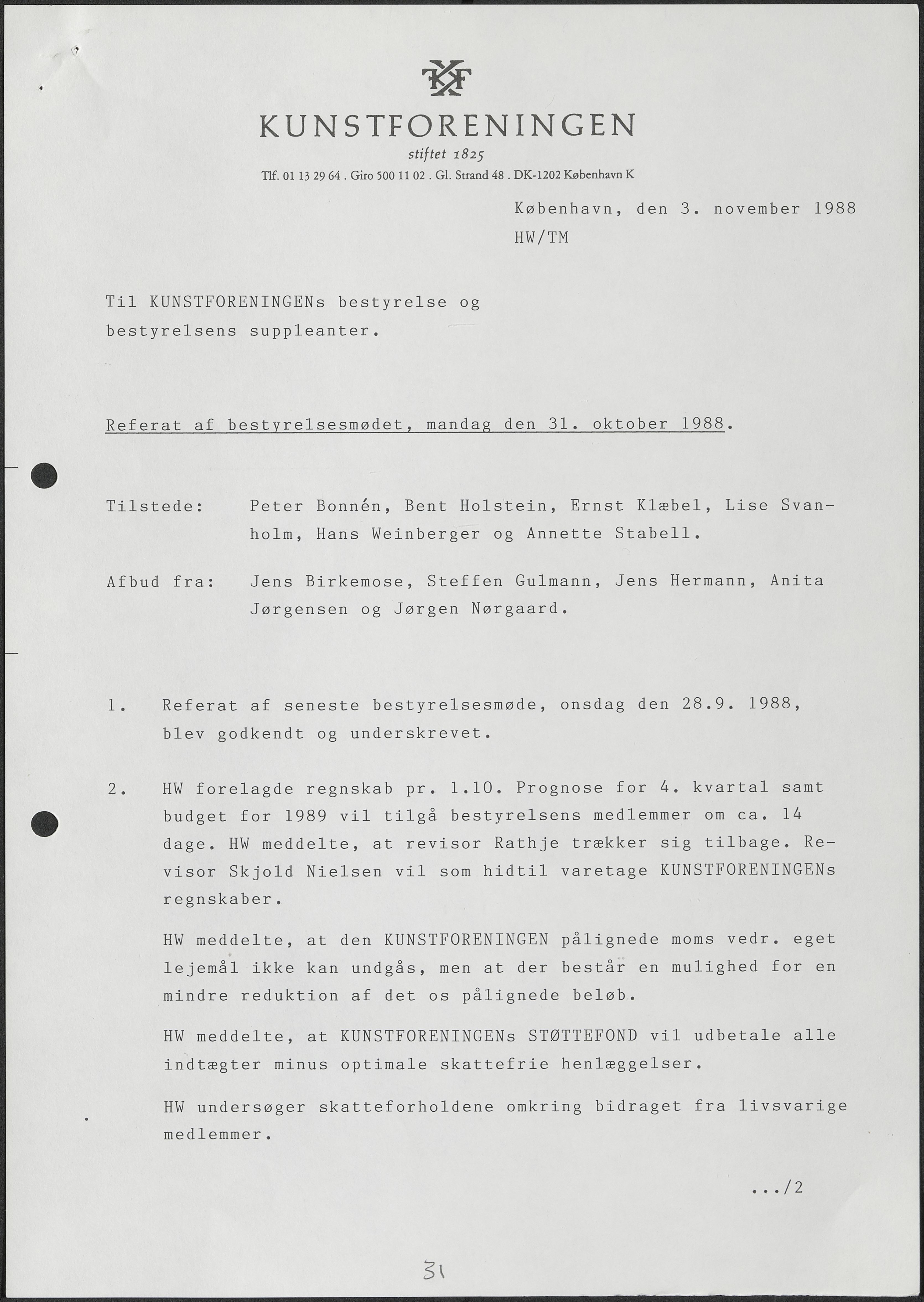 Bestyrelsesmødereferater i løsbladsprotokol side 1-37, år 1988.