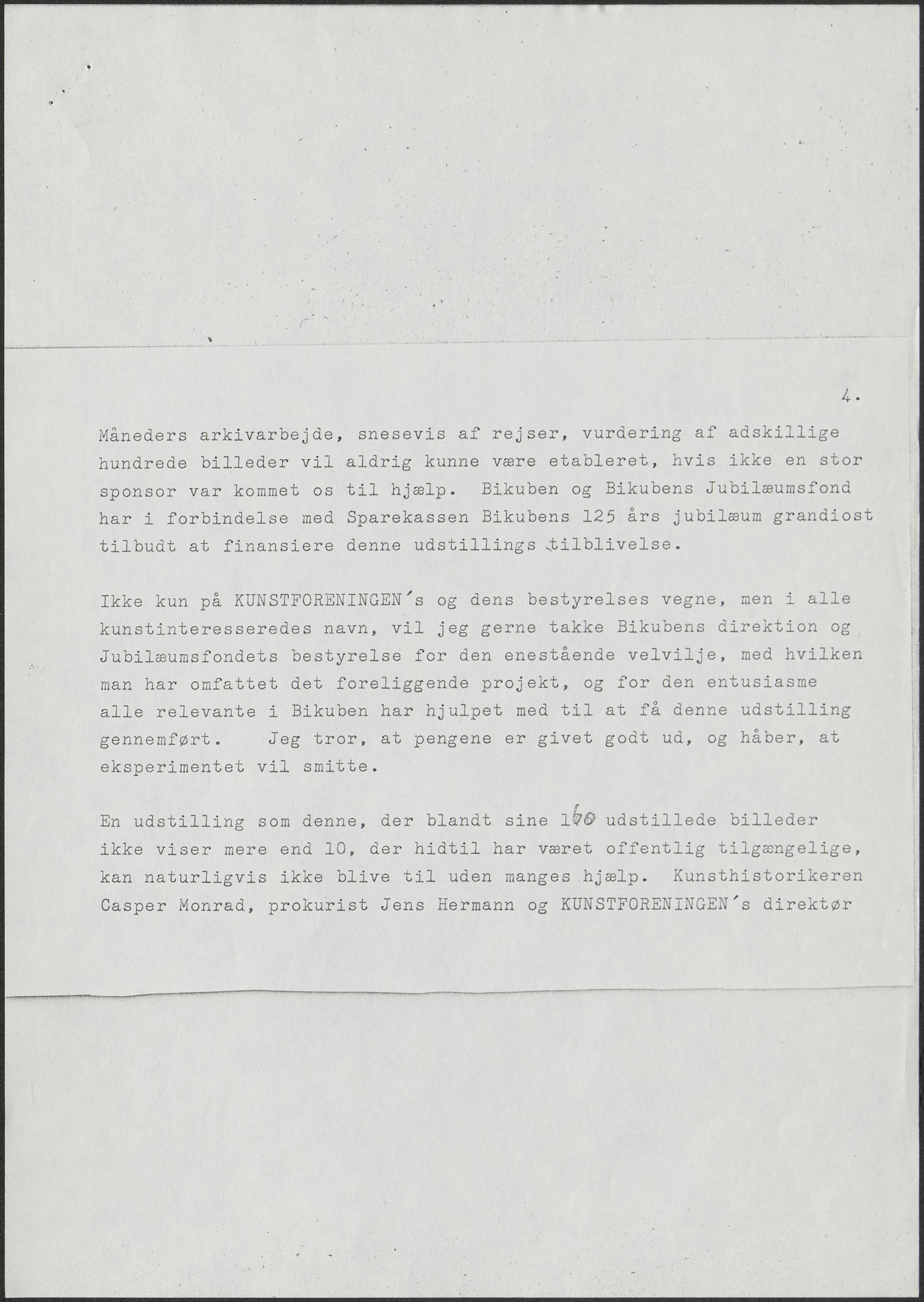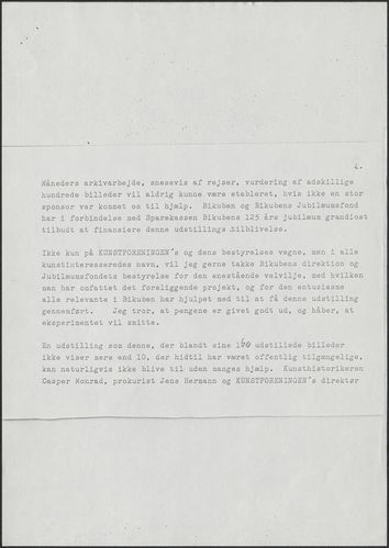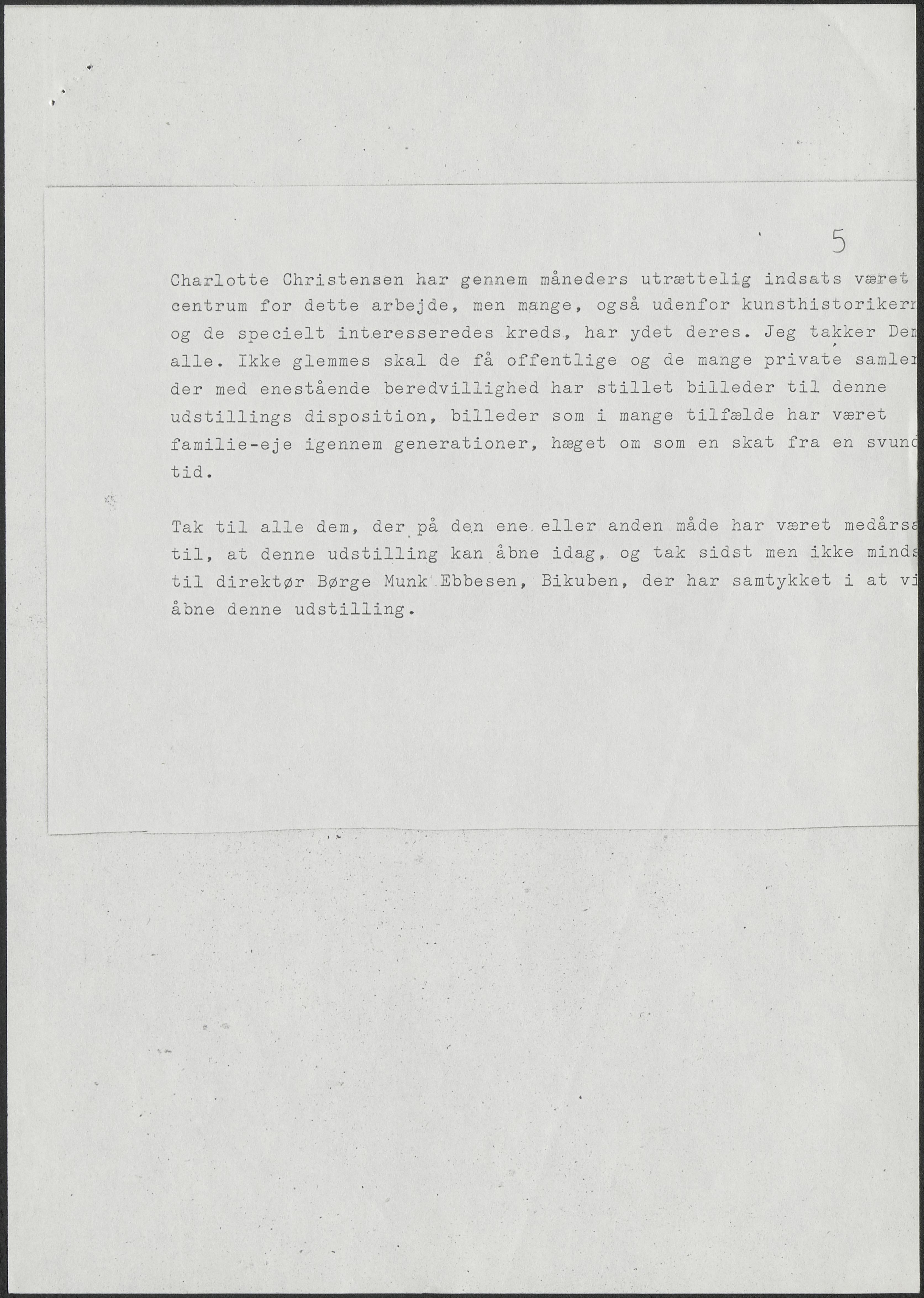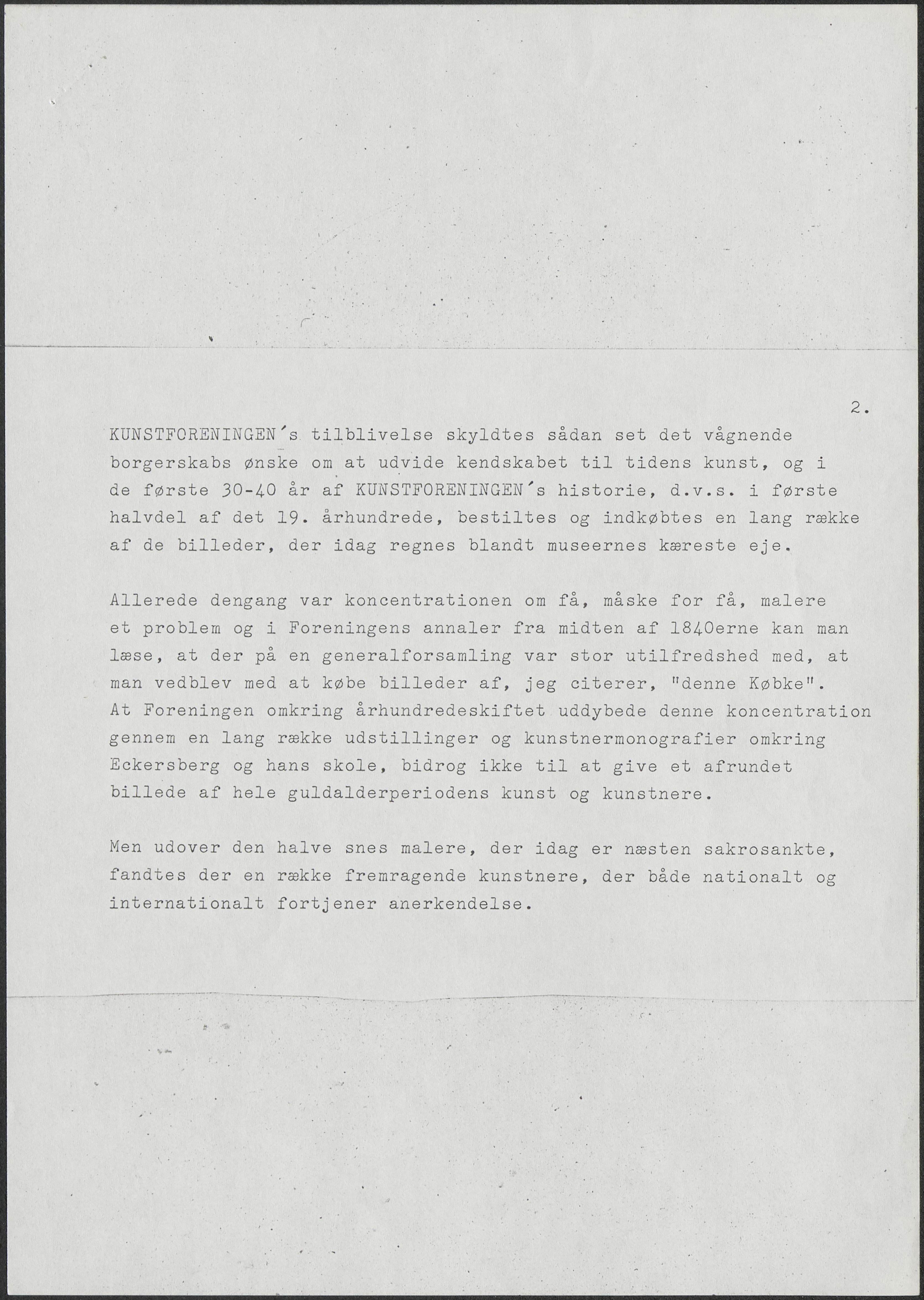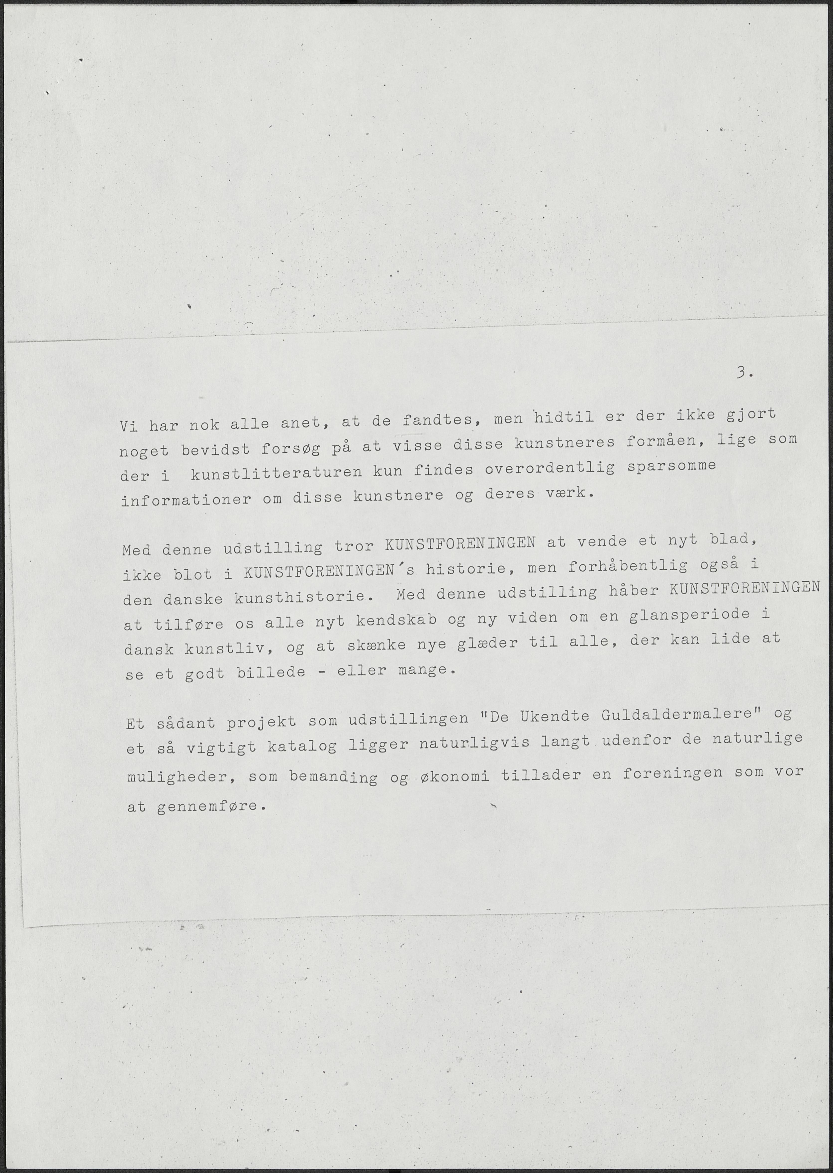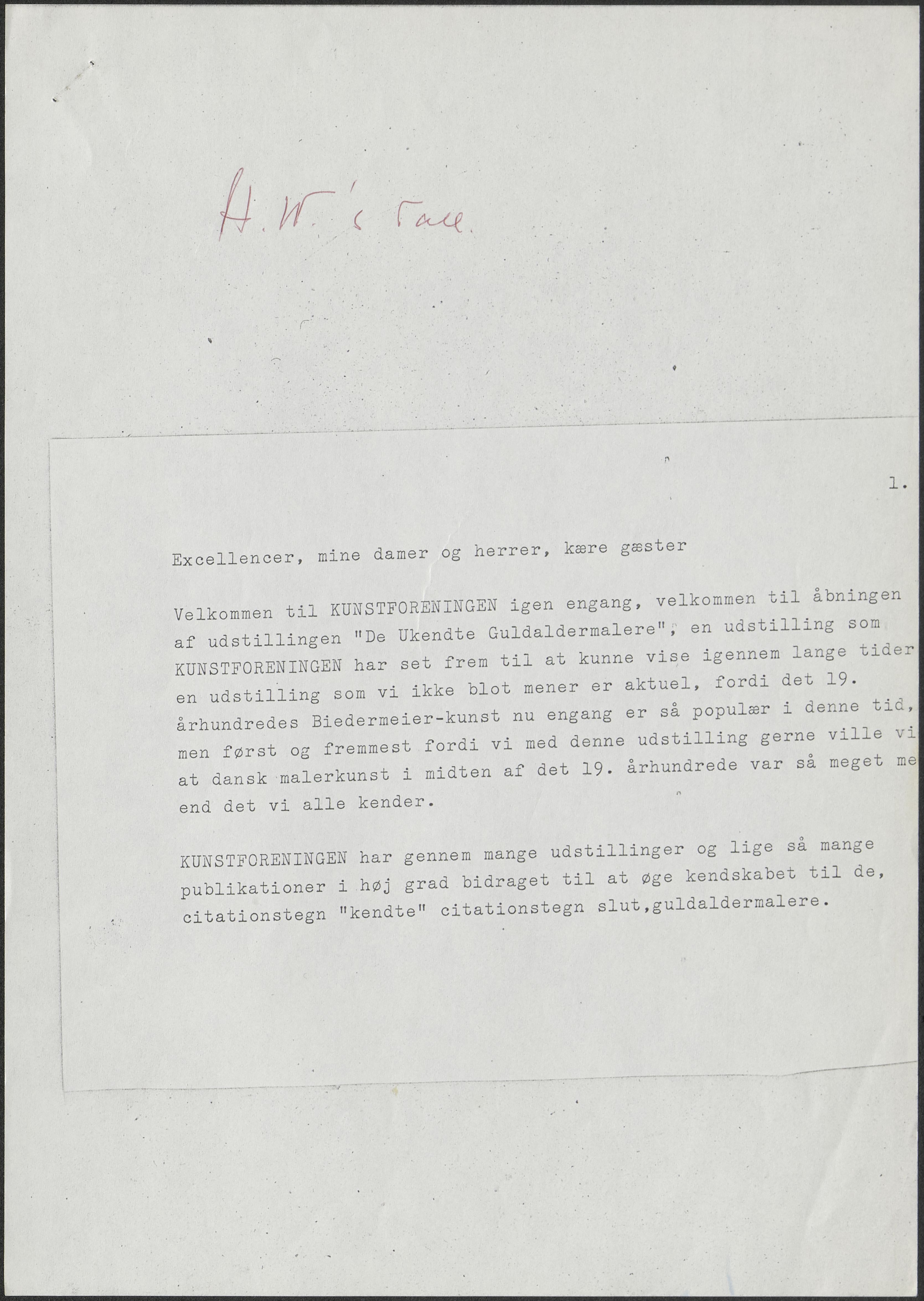 Formand for Kunstforeningens bestyrelse Hans W. Weinbergers tale ved åbningen af udstillingen "De ukendte guldaldermalere" d. 5. marts 1982.