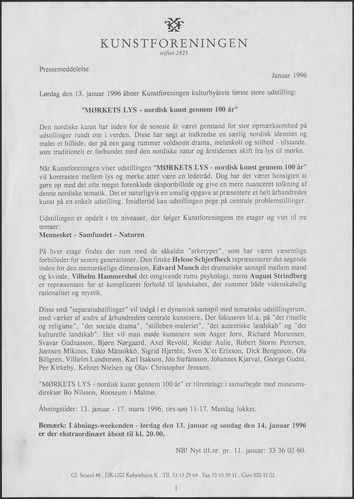 Pressemeddelelse, 1996: Mørkets lys