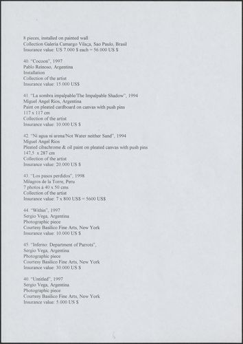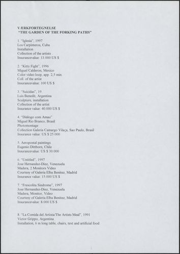 Værkliste, 1998: The Garden of Forking Paths. 24 kunstnere fra Latinamerika