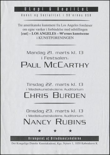 Undervisningsforløb arrangeret af Det Kongelige Danske Kunstakademis Billedkunstskoler ifm. udstillingen "[cut] - LOS ANGELES - 90'ernes kunstscene" i 1994.