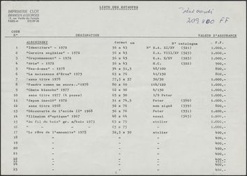 Back Kunstforeningen Assuranceliste, 1979: Grafik fra Imprimerie Clot, Bramsen et Georges Facts Document type Exhibition records Mentioned exhibitions 1979-4-24 - 1979-7-1, Grafik fra Imprimerie Clot, Bramsen et George Original