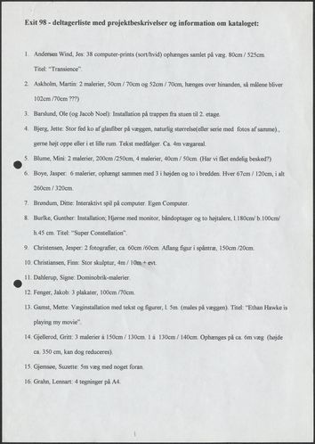Kunstnerliste, 1998: EXIT 98