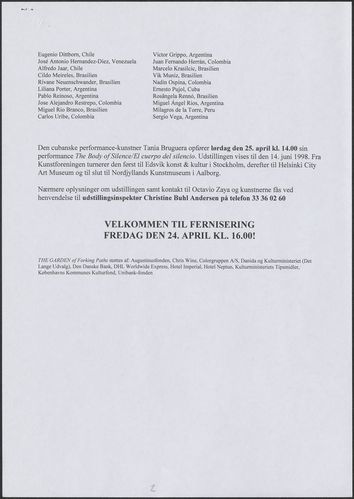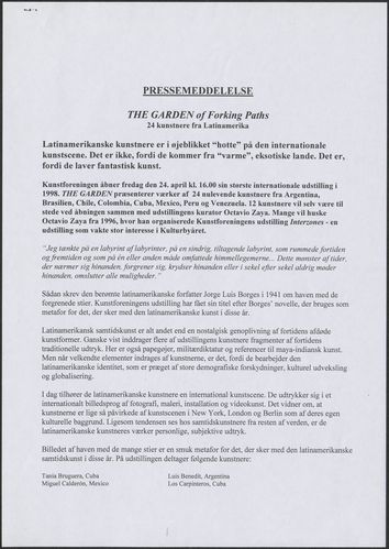 Pressemeddelelse, 1998: The Garden of Forking Paths. 24 kunstnere fra Latinamerika