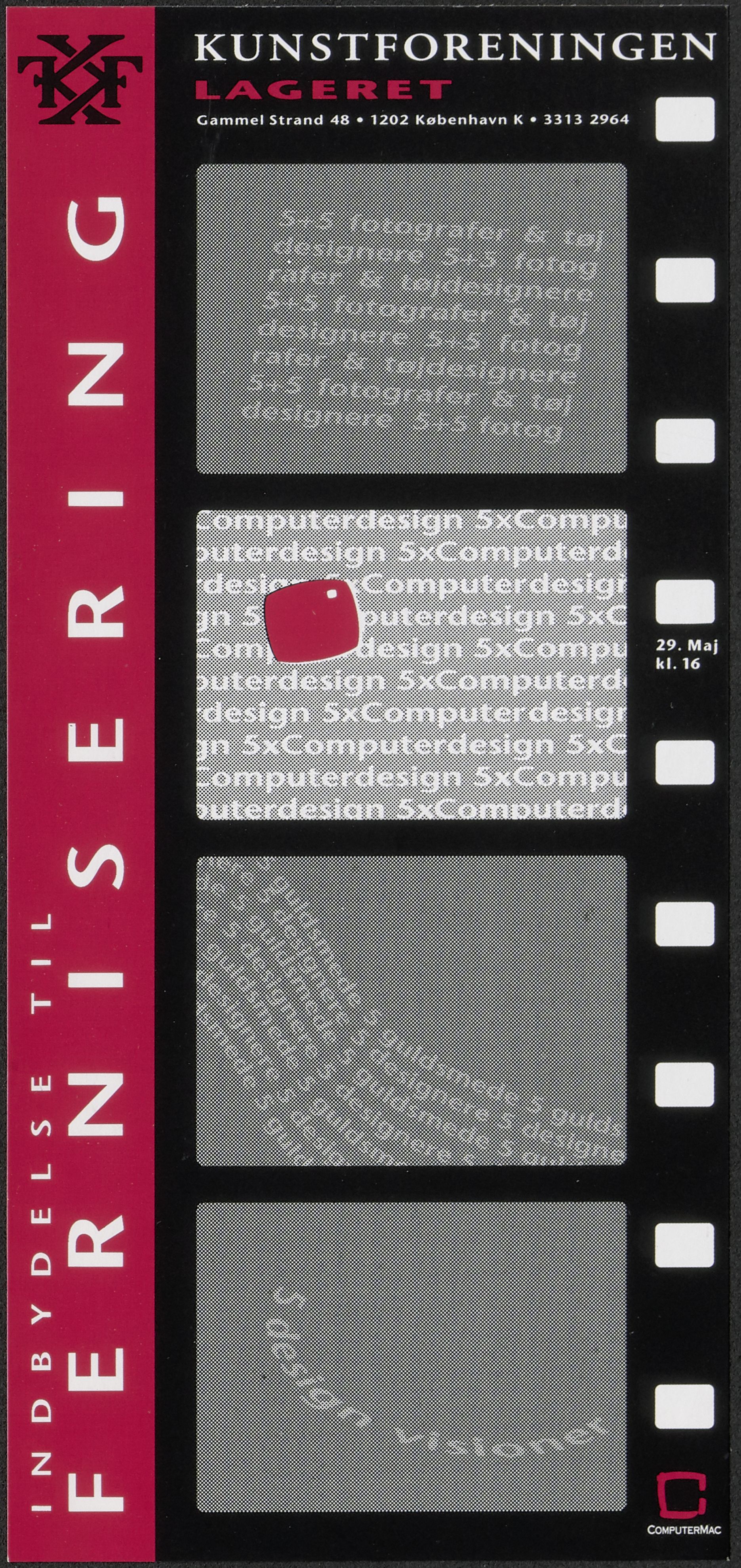 Back Kunstforeningen 1992 Document content Awaiting summary Facts Document type Invitation card Sender's location København Mentioned exhibitions 1992-5-29 - 1992-6-17, Computer og design Original