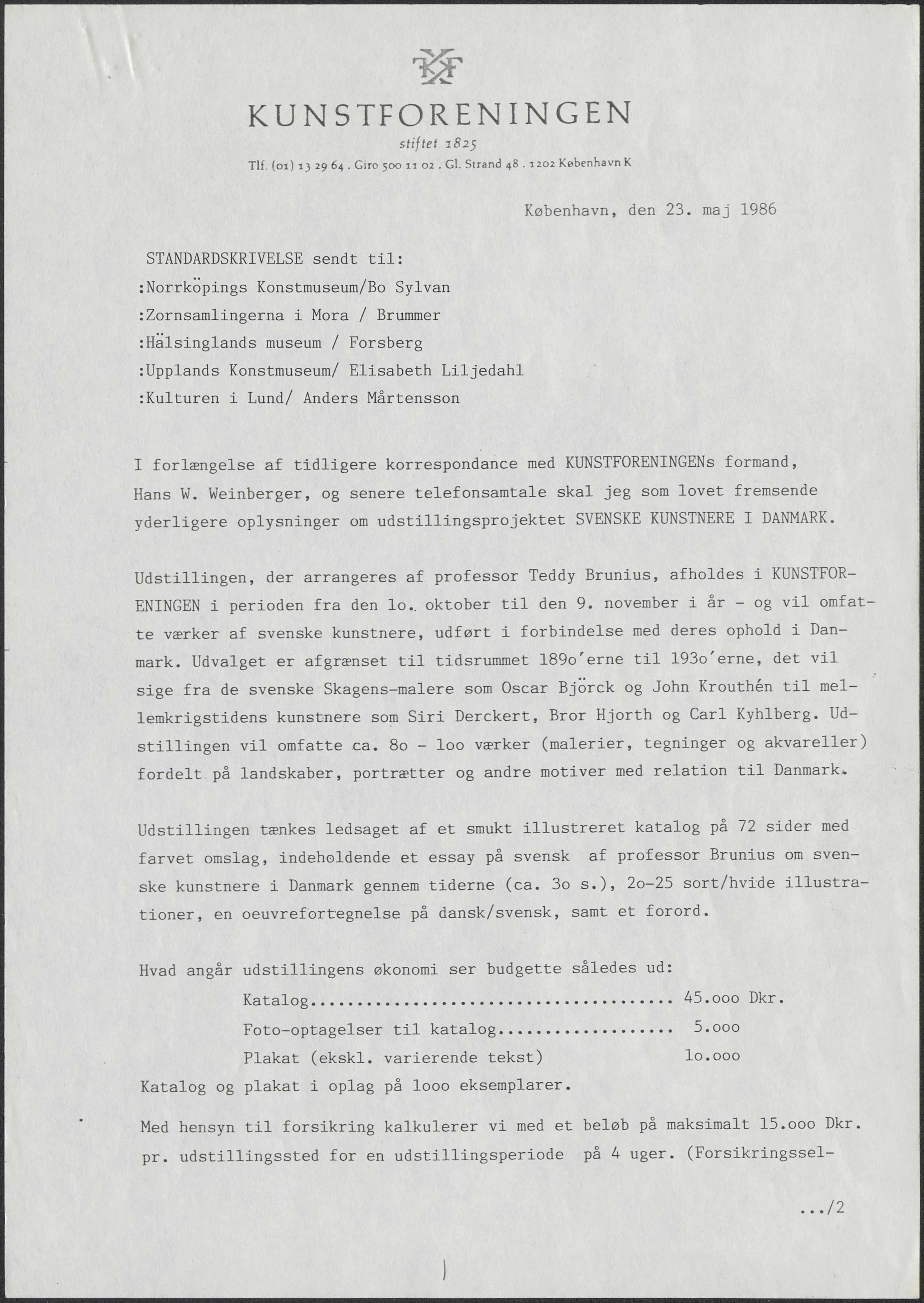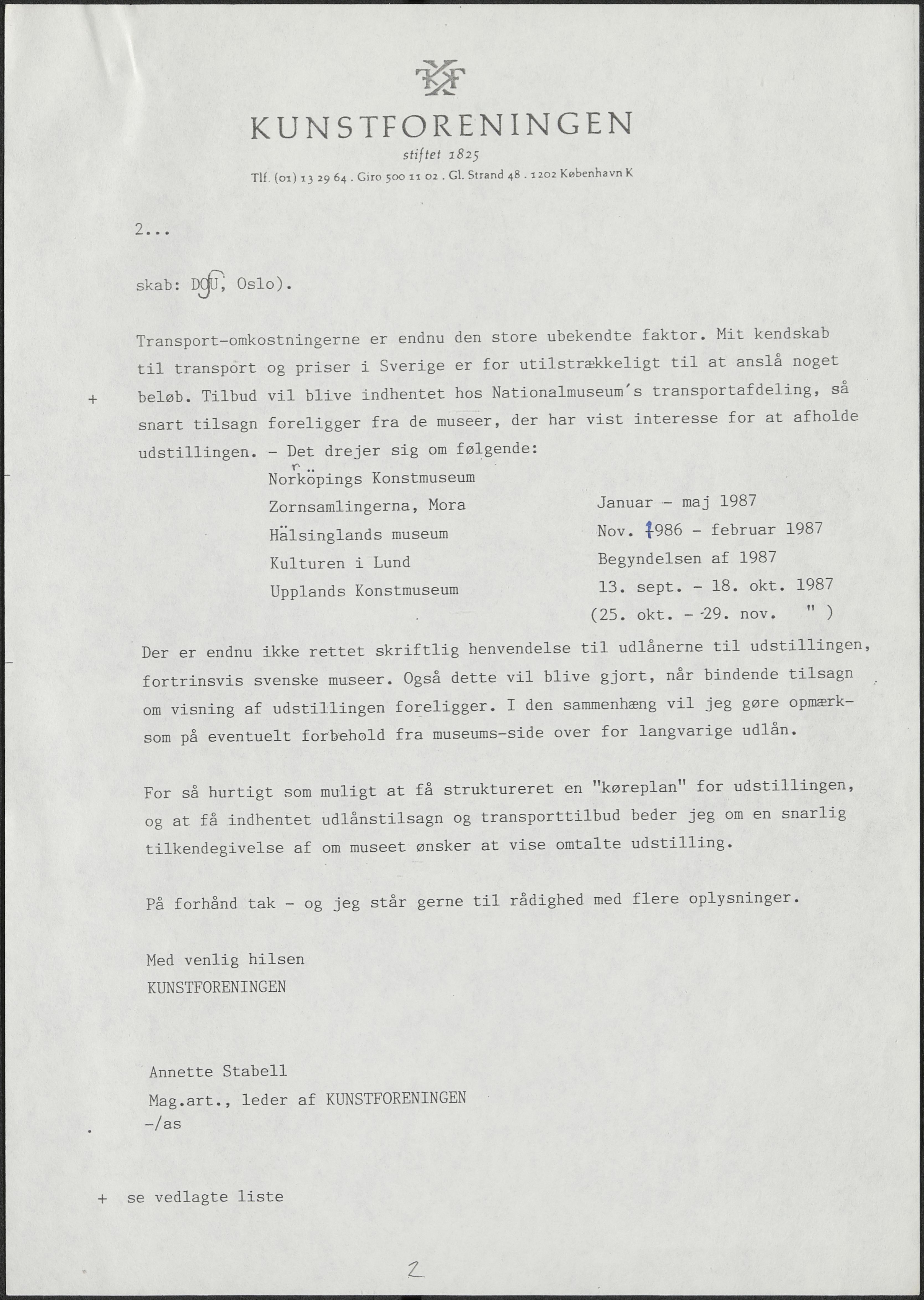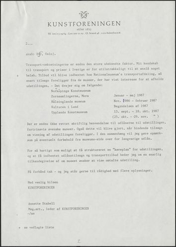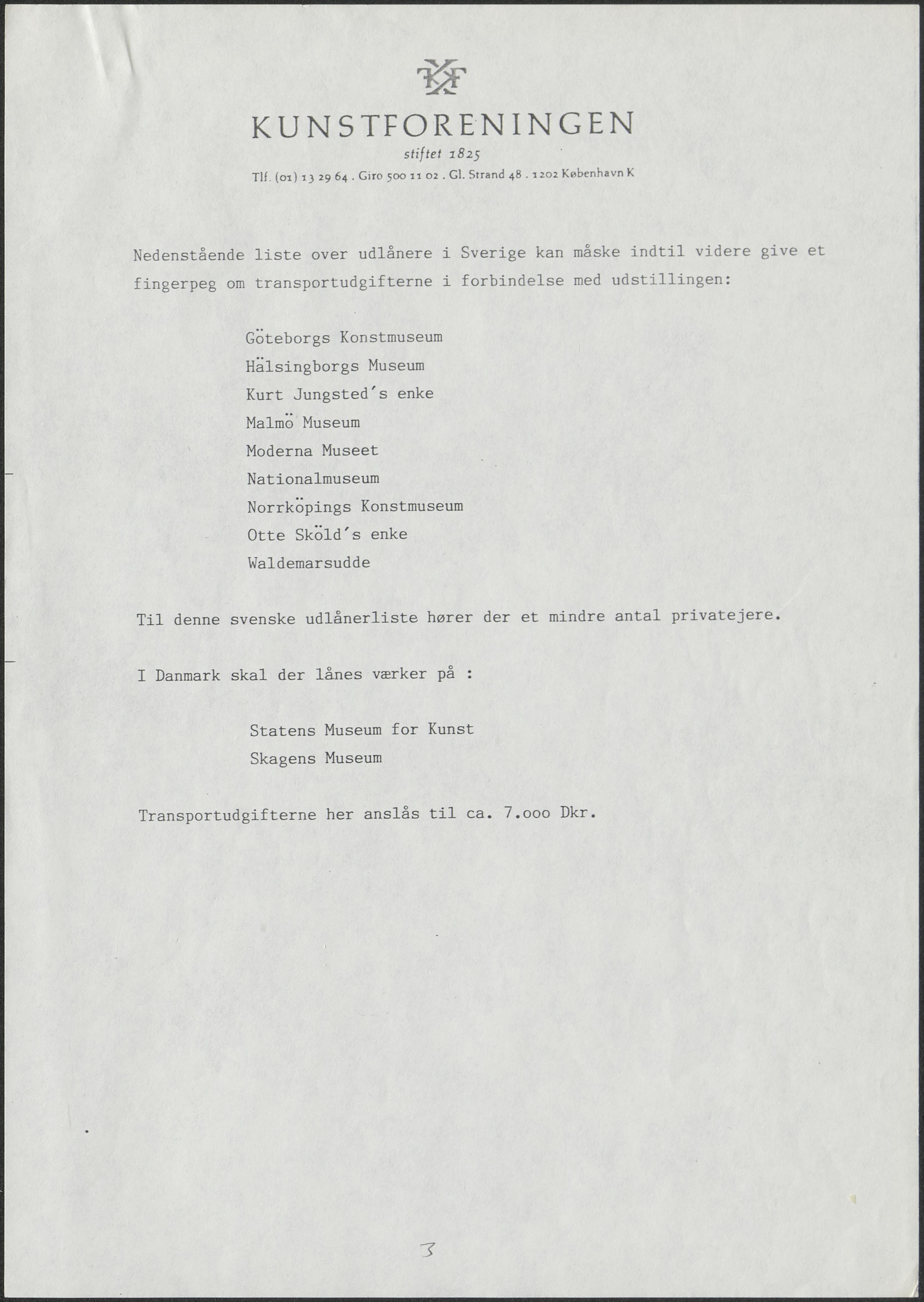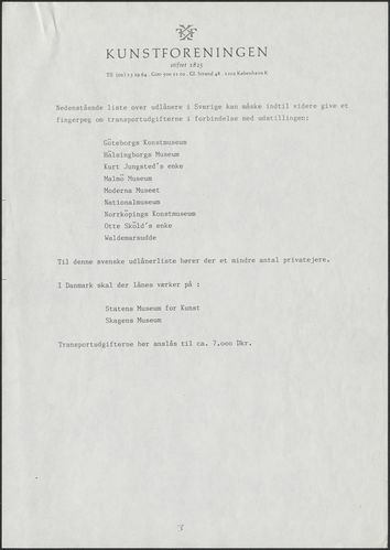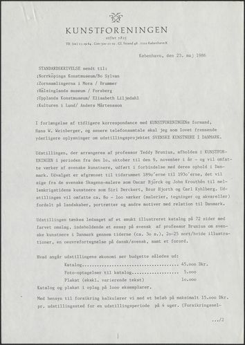 Back Kunstforeningen Diverse noter, 1986: Svenske kunstnere i Danmark Facts Document type Exhibition records Mentioned exhibitions 1986-10-10 - 1986-11-9, Svenske kunstnere i Danmark Original