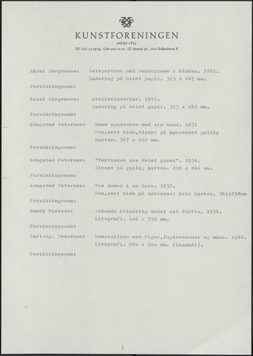 Back Kunstforeningen Værkliste, 1976: Dansk kunst 1915-1945 Facts Document type Exhibition records Mentioned people Jan Garff Mentioned exhibitions 1976-2-27 - 1976-3-28, Dansk kunst 1915-1945 Original