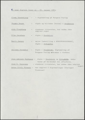 Back Kunstforeningen Arrangementsprogram, 1983: Under nordstjernen møder den døddrukne rorgænger rådvildheden Facts Document type Exhibition records Mentioned exhibitions 1983-1-11 - 1983-1-30, Under nordstjernen møder den døddrukne rorgænger rådvildheden Original