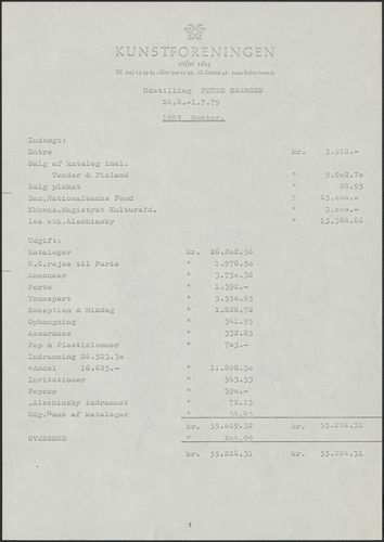 Back Kunstforeningen Udstillingsregnskab, 1979: Grafik fra Imprimerie Clot, Bramsen et Georges Facts Document type Exhibition records Mentioned people Peter Bramsen Mentioned exhibitions 1979-4-24 - 1979-7-1, Grafik fra Imprimerie Clot, Bramsen et George Original