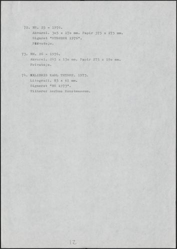 Back Kunstforeningen Værkliste, 1977: Niels Strøbek Facts Document type Exhibition records Mentioned people Niels Strøbek Mentioned exhibitions 1977-11-14 - 1977-11-13, Niels Strøbek Original