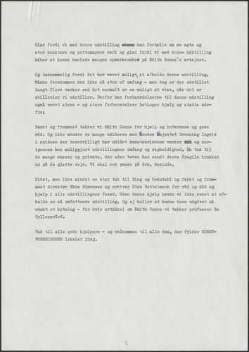 Back Kunstforeningen 1985-12-06 Document content Awaiting summary Facts Document type Speech Mentioned people Edith Sonne Bruun Mentioned exhibitions 1985-12-7 - 1985-12-29, Edith Sonne. Keramiske arbejder udført hos Bing & Grøndahl Original