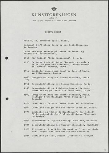 Back Kunstforeningen Diverse noter, 1977: Ib Braase, Dewez, Sarkis Facts Document type Exhibition records Mentioned people Rosita Dewez Mentioned exhibitions 1977-2-18 - 1977-3-20, Ib Braase, Dewez, Sarkis Original