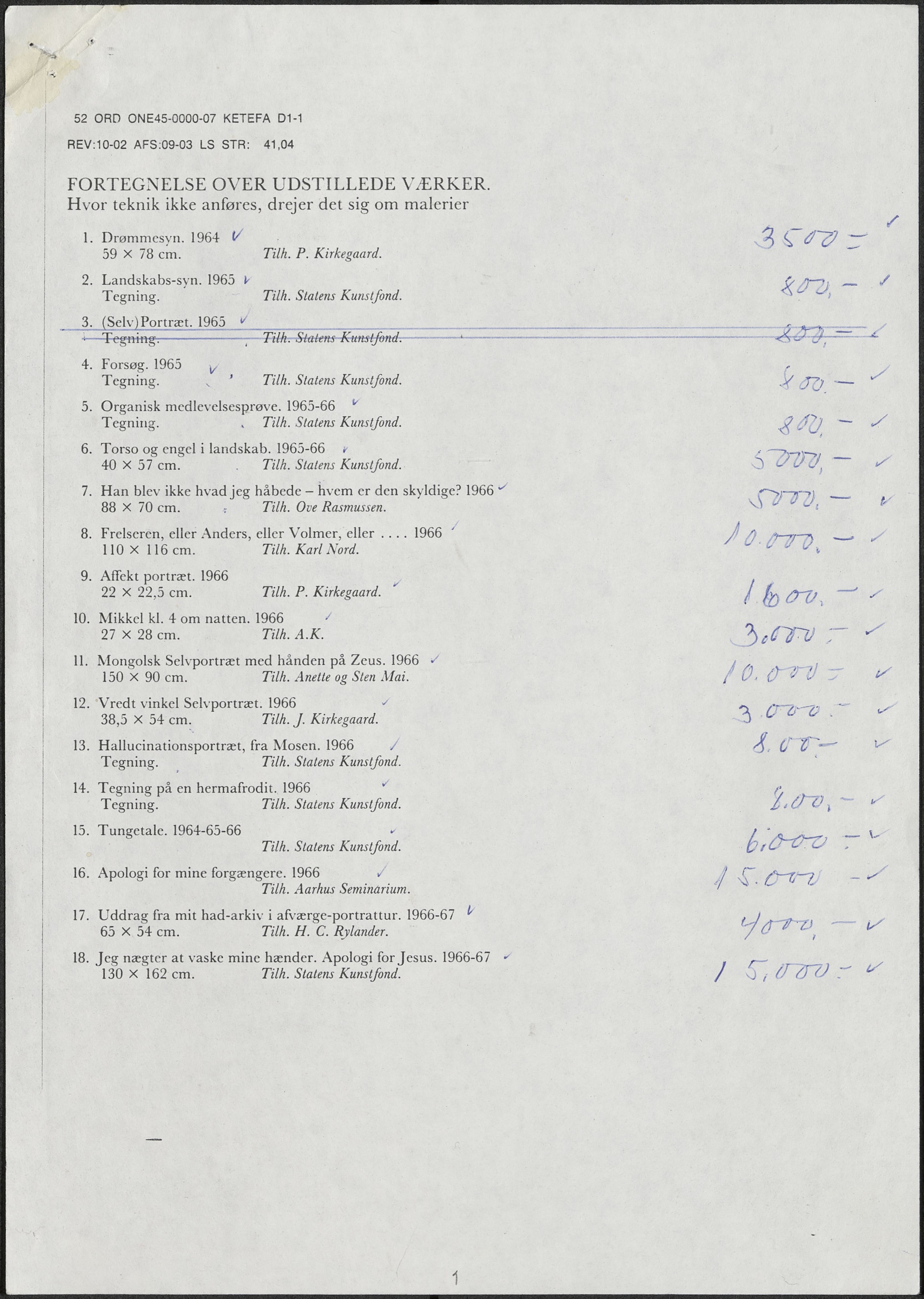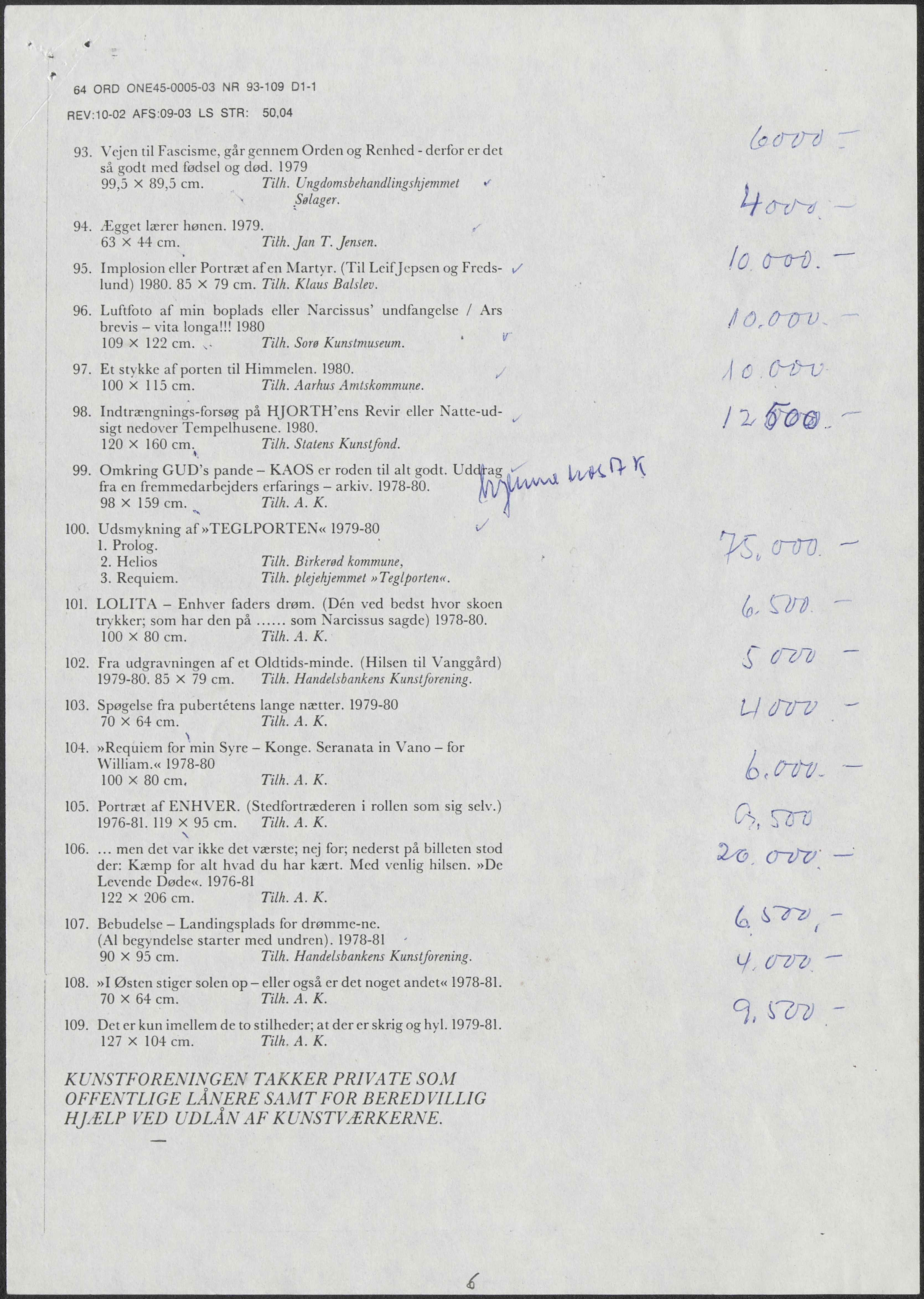 Back Kunstforeningen Assuranceliste, 1981: Anders Kirkegaard Facts Document type Exhibition records Mentioned people Anders Kirkegaard Mentioned exhibitions 1981-2-14 - 1981-3-15, Anders Kirkegaard Original