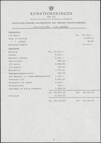 Back Kunstforeningen Udstillingsregnskab, 1984: Nutidig svensk billedtekstil fra Röhsska Konstslöjdmuseet Facts Document type Exhibition records Mentioned exhibitions 1984-2-7 - 1984-3-11, Nutidig svensk billedtekstil fra Röhsska Konstslöjdmuseets samlinger Original