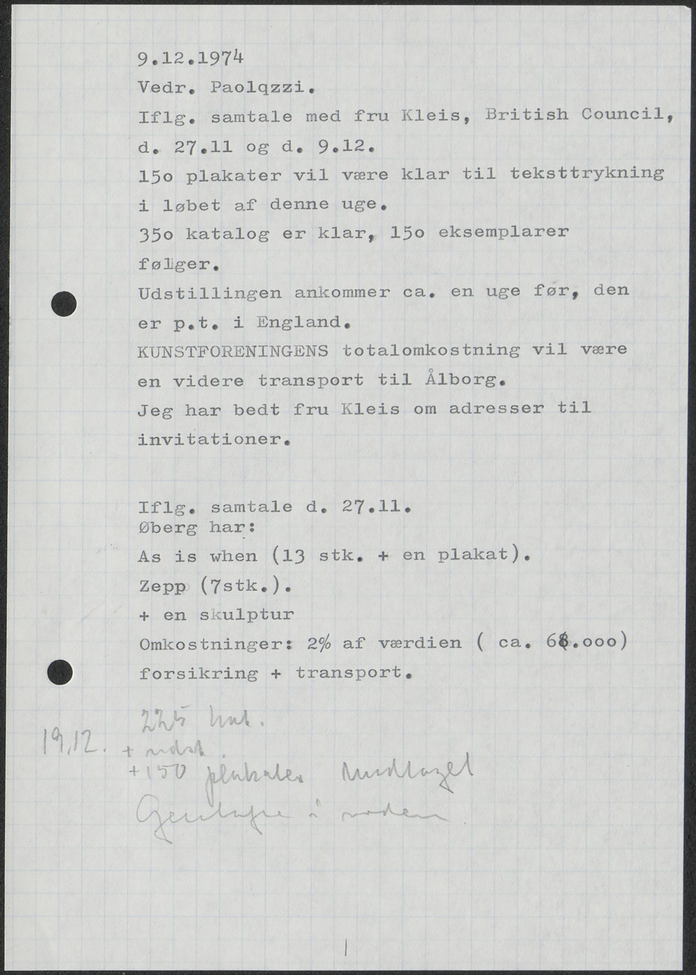 Back Kunstforeningen Diverse noter, 1975: Paolozzi Facts Document type Exhibition records Mentioned people Eduardo Paolozzi Mentioned exhibitions 1975-1-10 - 1975-2-2, Paolozzi Original