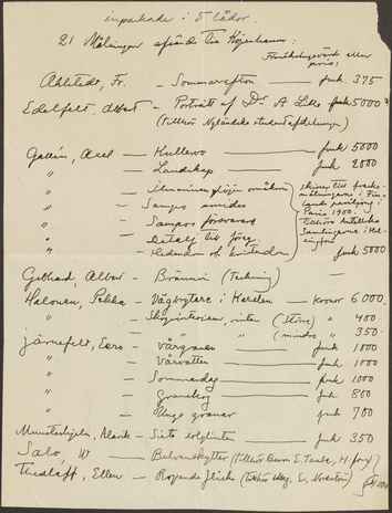 Back Kunstforeningen 1901-01-15 Sender Recipient Kunstforeningens bestyrelse Document content Awaiting summary Facts Document type Letter Sender's location Helsinki Mentioned exhibitions 1901-1-20 - 1901-2-10, "Finske Kunstneres Udstilling" Original