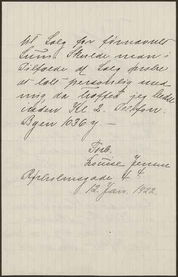 Back Kunstforeningen 1922-01-12 Sender Louise Jensen Recipient Kunstforeningens bestyrelse Document content Awaiting summary Facts Document type Letter Mentioned people C.A. Jensen Mentioned exhibitions 1922-2-19 - 1922-3-15, Chr. Albr. Jensen Original