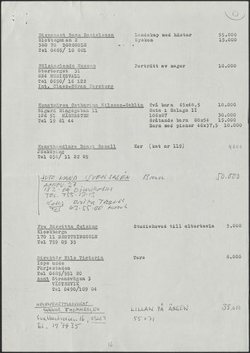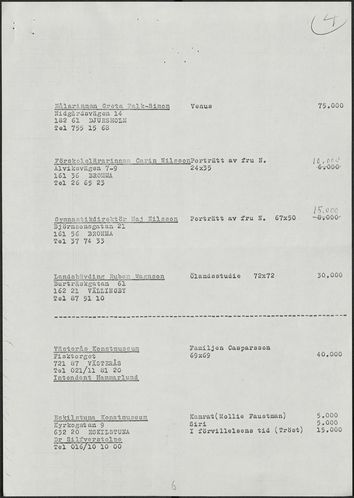 Back Kunstforeningen Værkejerliste, 1975: Vera Nilsson Facts Document type Exhibition records Mentioned people Vera Nilsson Mentioned exhibitions 1975-4-18 - 1975-5-15, Vera Nilsson Original