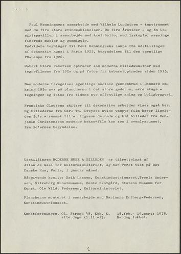 Back Kunstforeningen Formidlingsmateriale, 1978: Moderne huse og billeder Facts Document type Exhibition records Mentioned exhibitions 1978-2-18 - 1978-3-19, Moderne huse og billeder Original