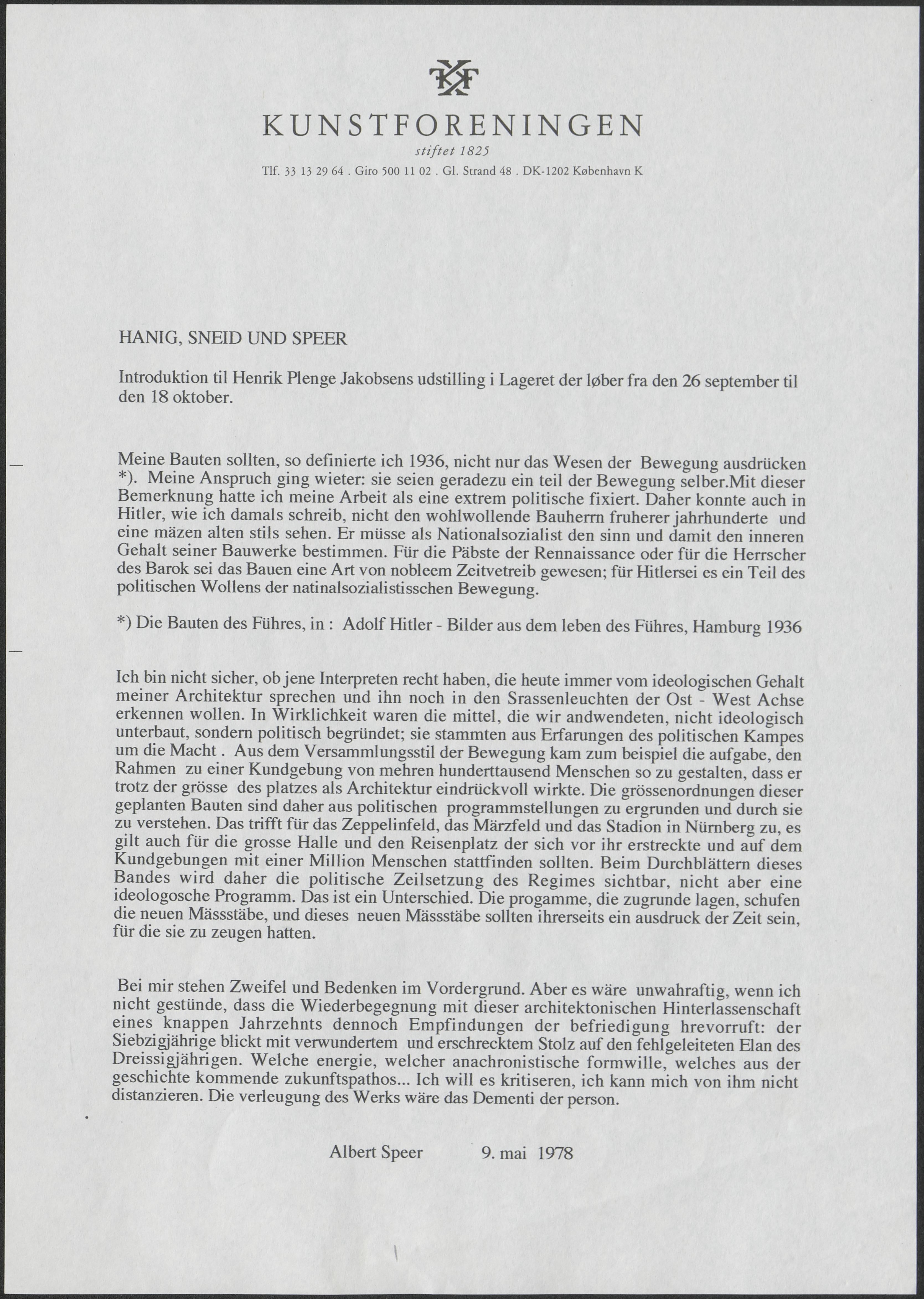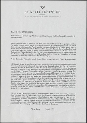 Back Kunstforeningen Udstillingstekst, 1992: Henrik Plenge Jakobsen. HANIG, SNEID UND SPEER Facts Document type Exhibition records Mentioned people Henrik Plenge Jakobsen Mentioned exhibitions 1992-9-26 - 1992-10-18, Henrik Plenge Jakobsen. HANIG, SNEID UND SPEER Original