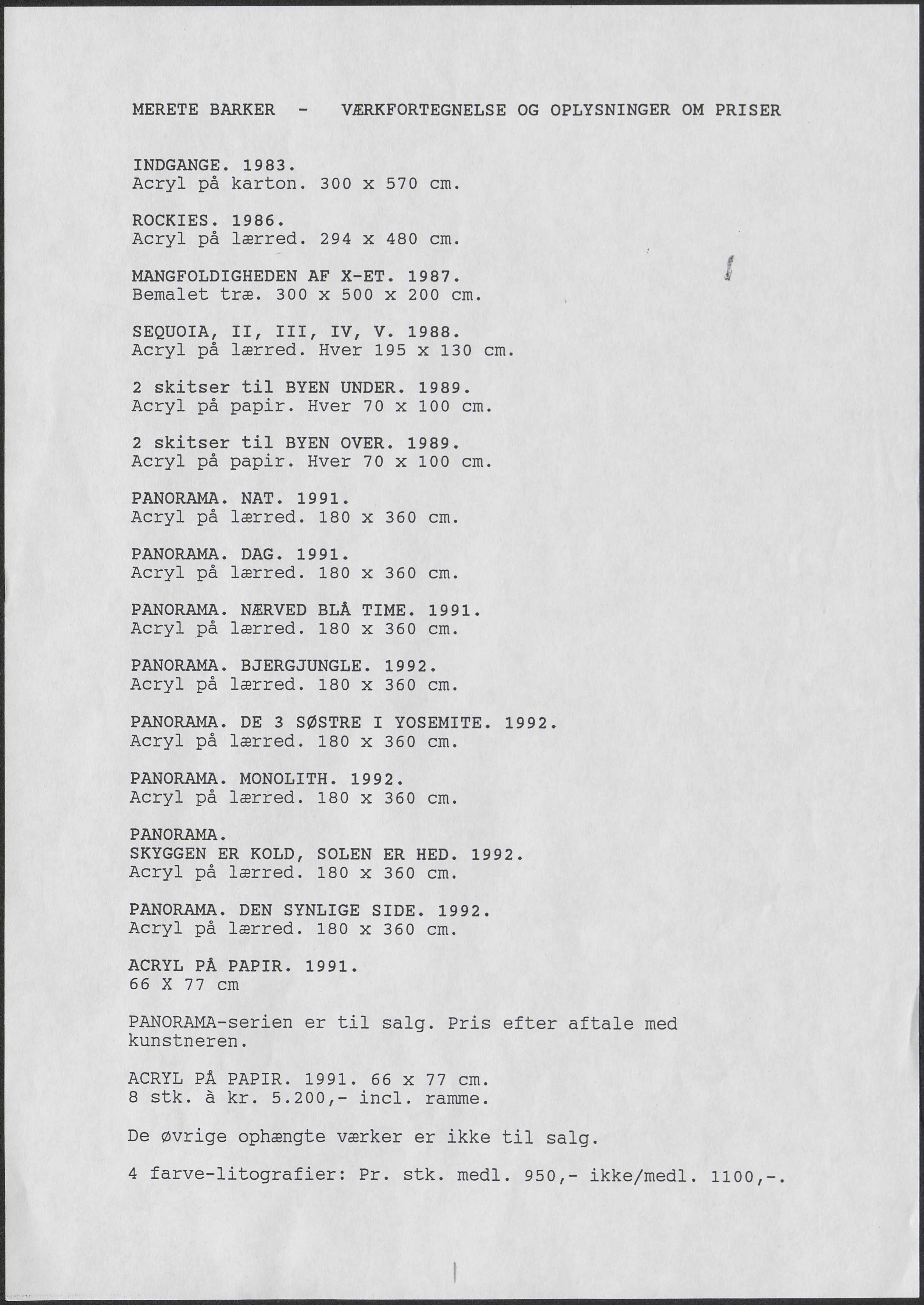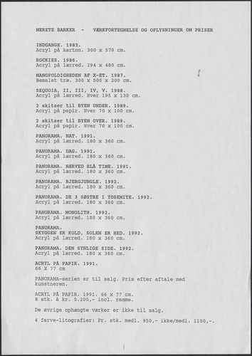Back Kunstforeningen Værkliste, 1992: Merete Barker. PANORAMA Facts Document type Exhibition records Mentioned people Merete Barker Mentioned exhibitions 1992-10-24 - 1992-11-15, Merete Barker. PANORAMA Original