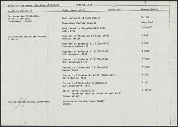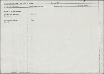 Back Kunstforeningen Værkliste, 1984: Indenfor murene. Jødisk kunst og kultur i Danmark Facts Document type Exhibition records Mentioned exhibitions 1984-11-17 - 1984-12-16, Indenfor murene. Jødisk kunst og kultur i Danmark Original