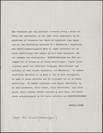 Back Kunstforeningen Diverse noter, 1983: Under nordstjernen møder den døddrukne rorgænger rådvildheden Author/Key figure Anneli Fuchs Facts Document type Exhibition records Mentioned exhibitions 1983-1-11 - 1983-1-30, Under nordstjernen møder den døddrukne rorgænger rådvildheden Original