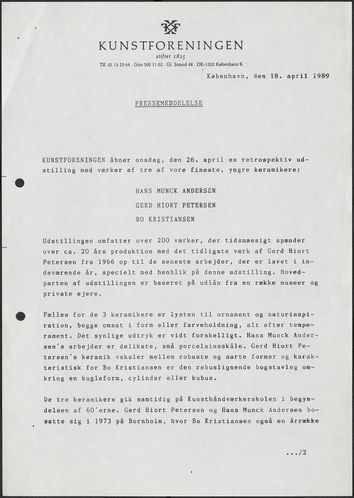 Back Kunstforeningen Pressemeddelelse, 1989: 3 keramikere. Hans Munck Andersen, Gerd Hiort Petersen, Bo Kristiansen Facts Document type Exhibition records Mentioned people Gerd Hiort PetersenBo KristiansenHans Munck Andersen Mentioned exhibitions 1989-4-26 - 1989-5-21, 3 keramikere. Hans Munck Andersen, Gerd Hiort Petersen, Bo Kristiansen Original