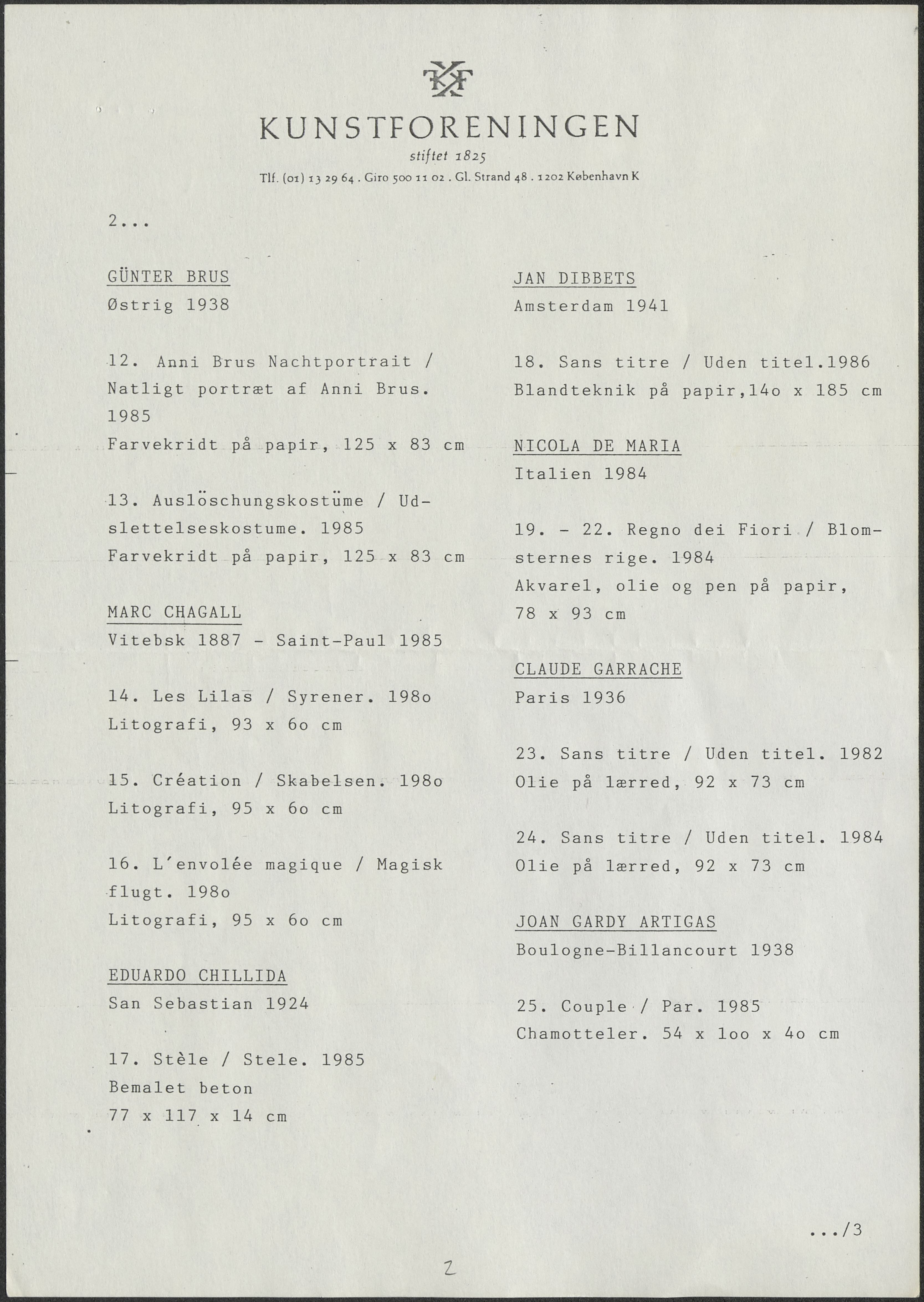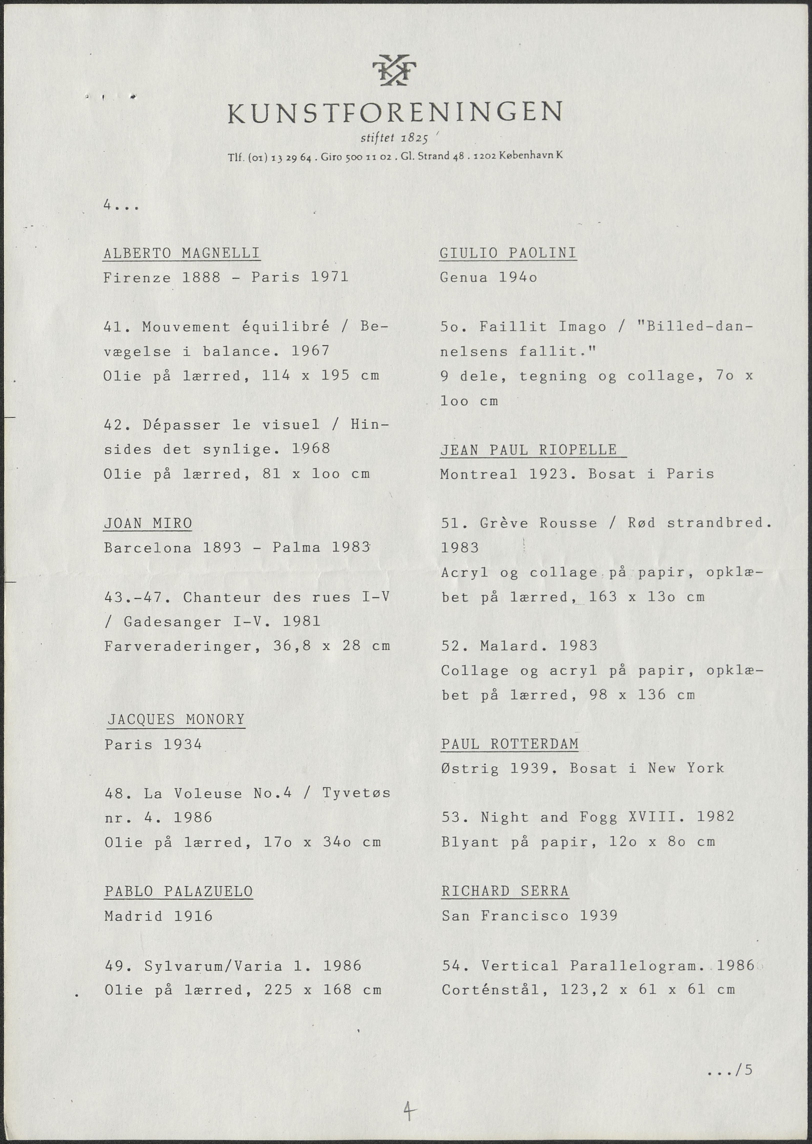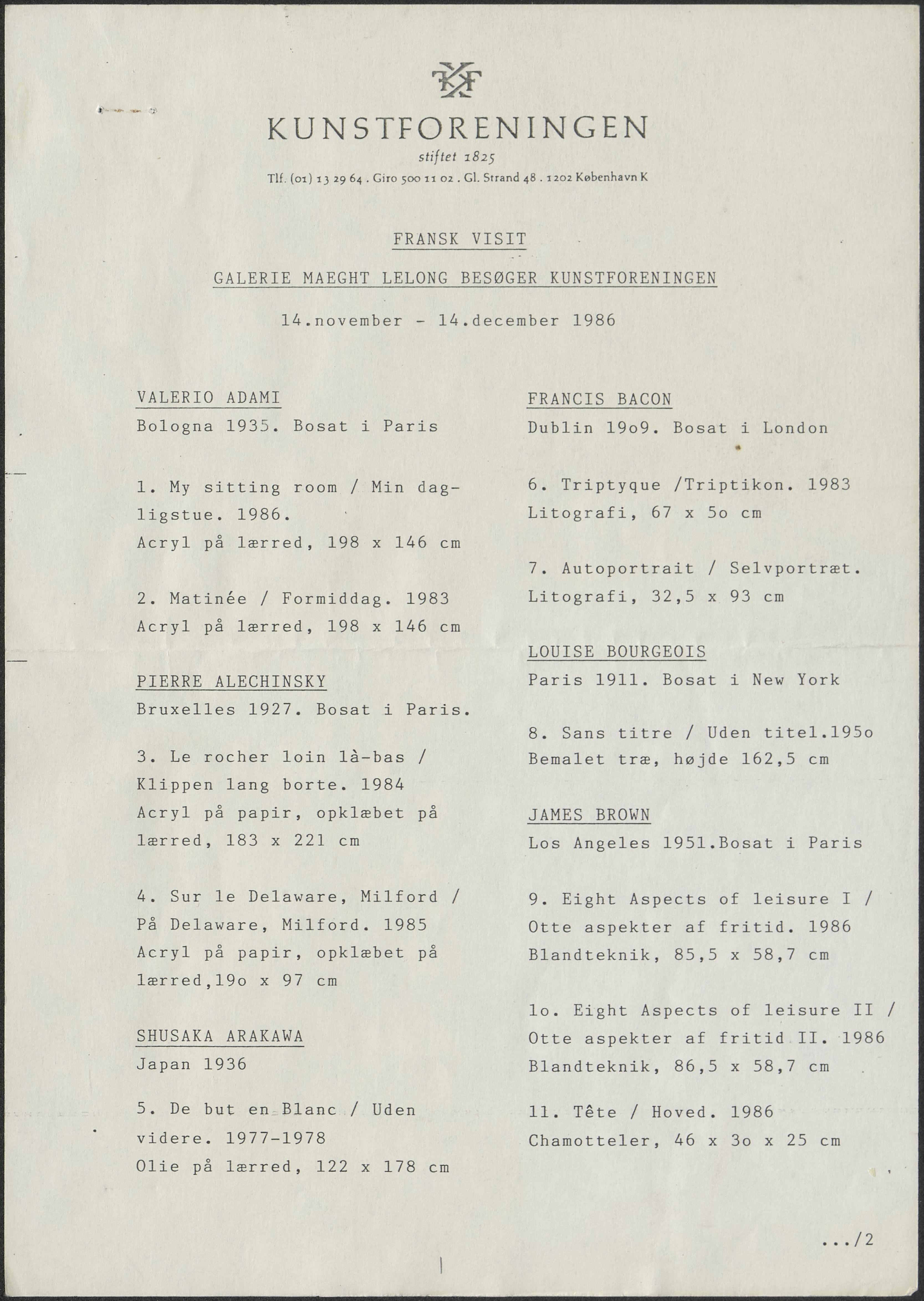 Værkliste, 1986: Fransk Visit. Galerie Maeght Lelong besøger Kunstforeningen