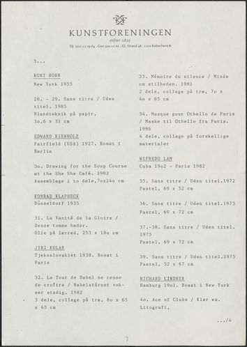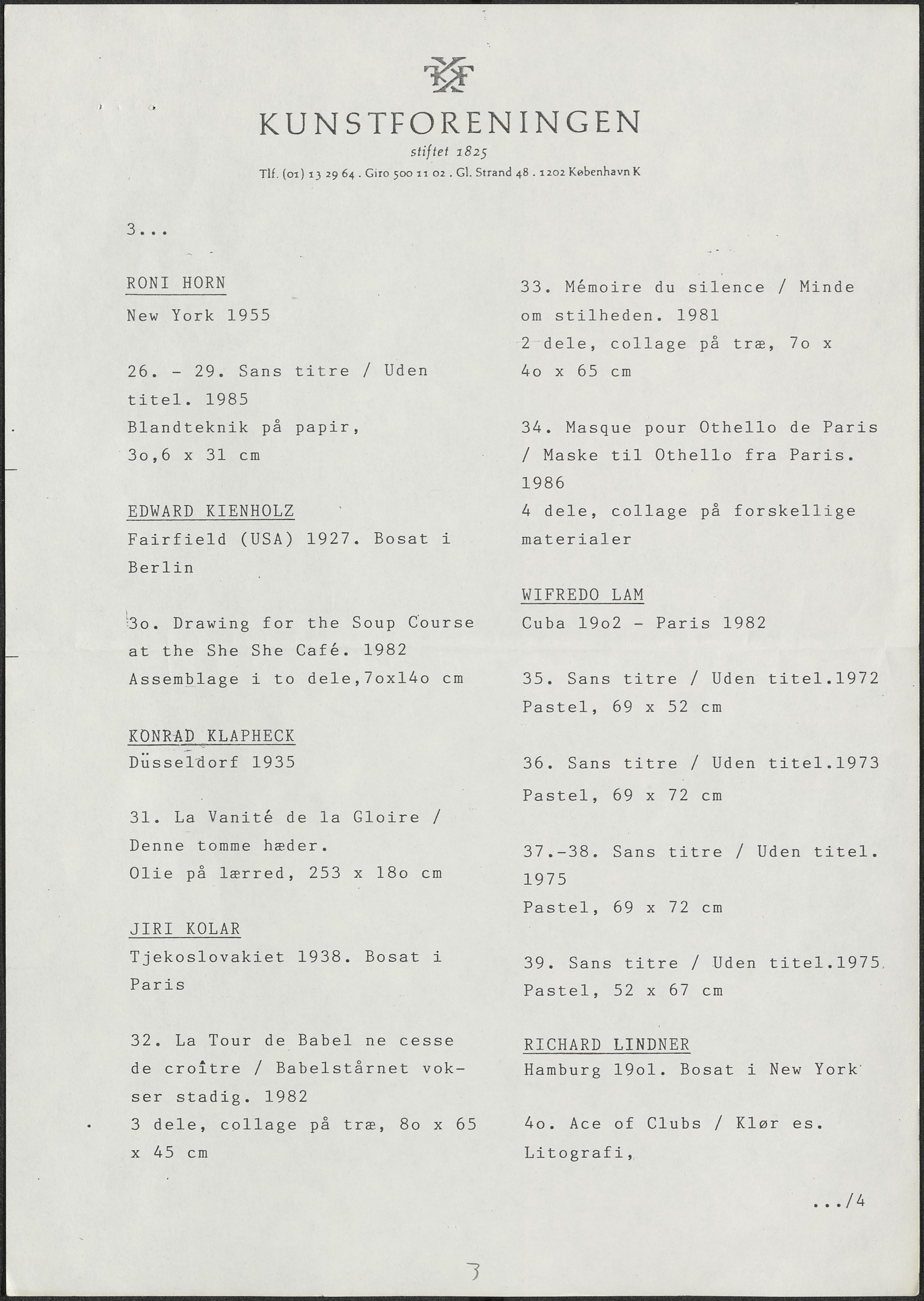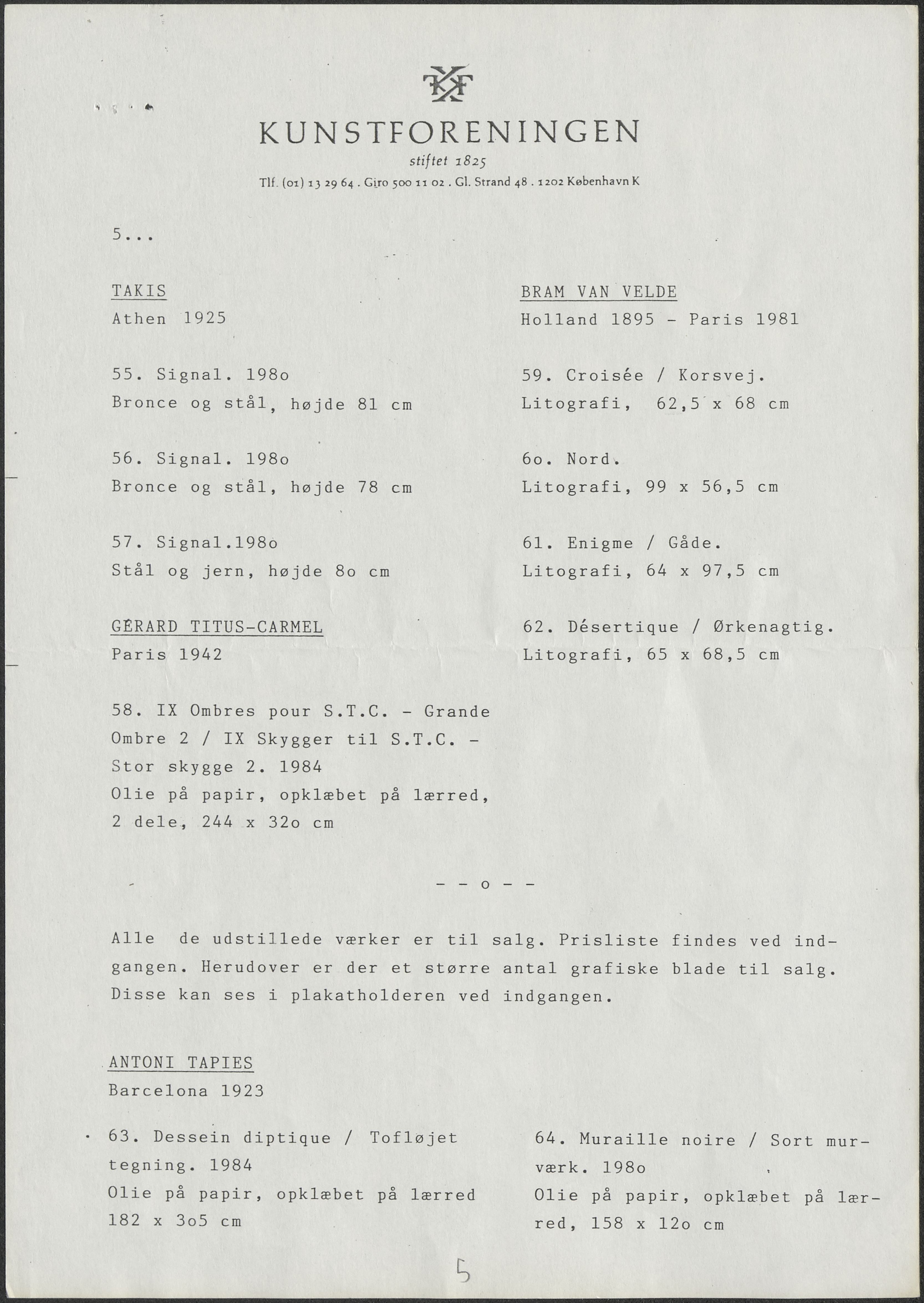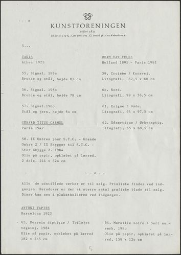 Værkliste, 1986: Fransk Visit. Galerie Maeght Lelong besøger Kunstforeningen