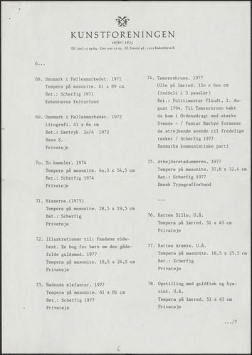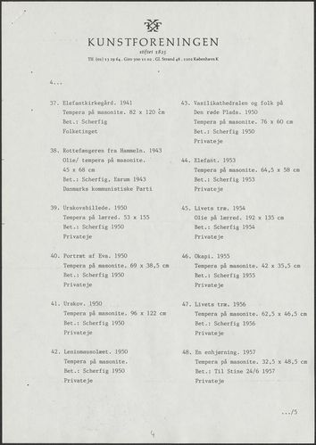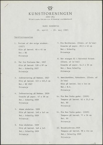 Back Kunstforeningen Værkliste, 1985: Hans Scherfig Facts Document type Exhibition records Mentioned people Hans Scherfig Mentioned exhibitions 1985-4-26 - 1985-5-26, Hans Scherfig Original