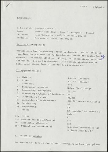 Back Kunstforeningen Mødereferat, 1985: Edith Sonne Facts Document type Exhibition records Mentioned people Edith Sonne BruunAnnette StabellHans Weinberger Mentioned exhibitions 1985-12-7 - 1985-12-29, Edith Sonne. Keramiske arbejder udført hos Bing & Grøndahl Original
