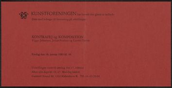 Back Kunstforeningen 1985-01-18 Facts Document type Invitation card Sender's location København Mentioned people Viggo JohansenJulius PaulsenLaurits Tuxen Mentioned exhibitions 1985-1-18 - 1985-2-17, Kontrafej og komposition. Viggo Johansen, Julius Paulsen og Laurits Tuxen Original