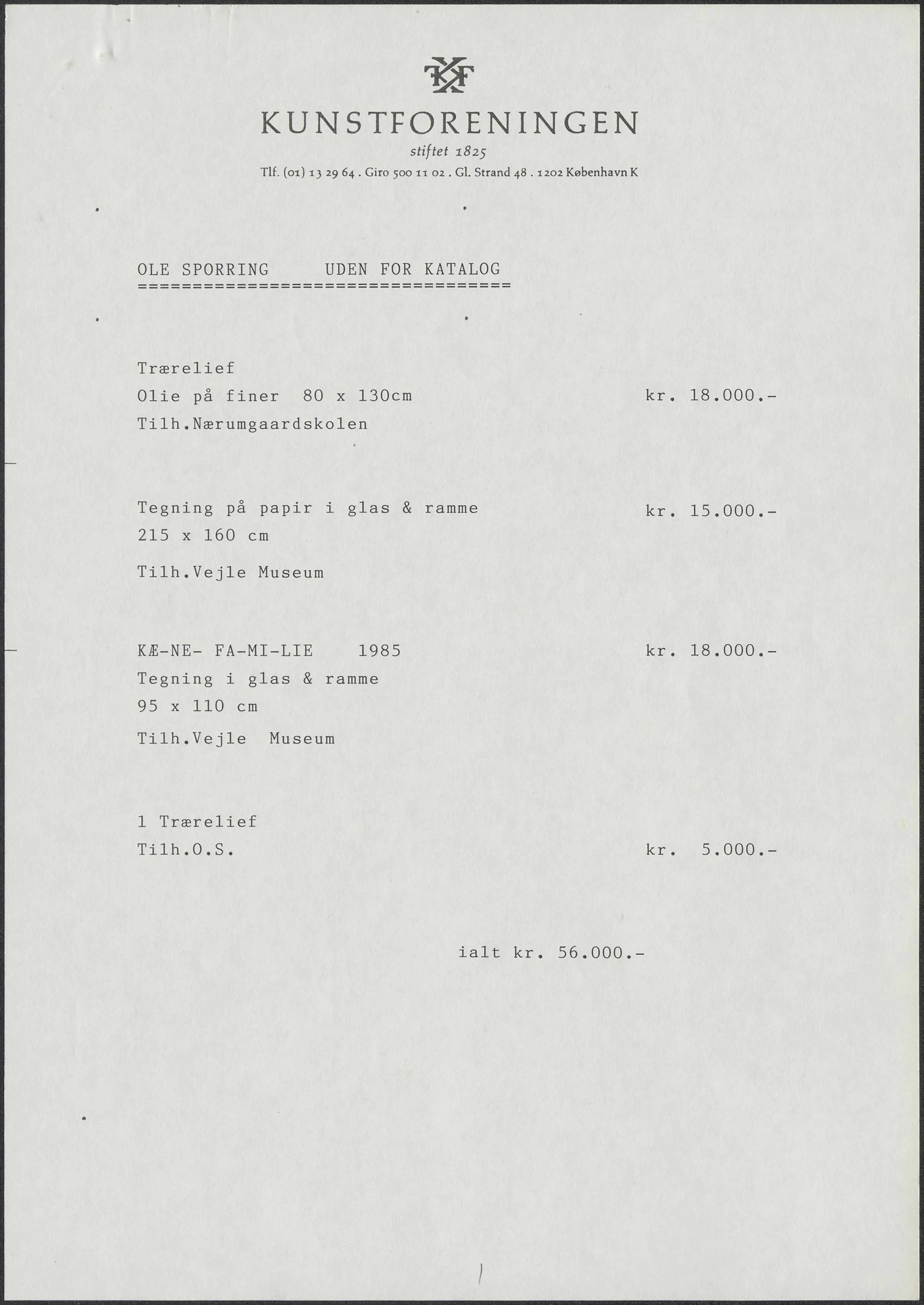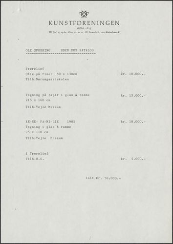 Back Kunstforeningen Diverse noter, 1976: - og blå jord. Ole Sporring Facts Document type Exhibition records Mentioned people Ole Sporring Mentioned exhibitions 1987-8-29 - 1987-9-27, - og blå jord. Ole Sporring Original
