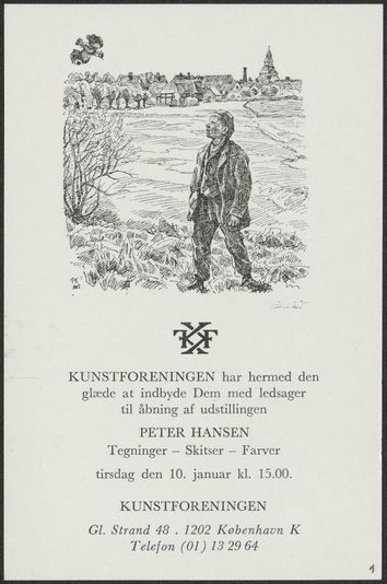 Back Kunstforeningen 1978-01-10 Facts Document type Invitation card Sender's location København Mentioned people Peter Hansen Mentioned exhibitions 1978-1-10 - 1978-2-12, Peter Hansen. Tegninger - Skitser - Farver Original