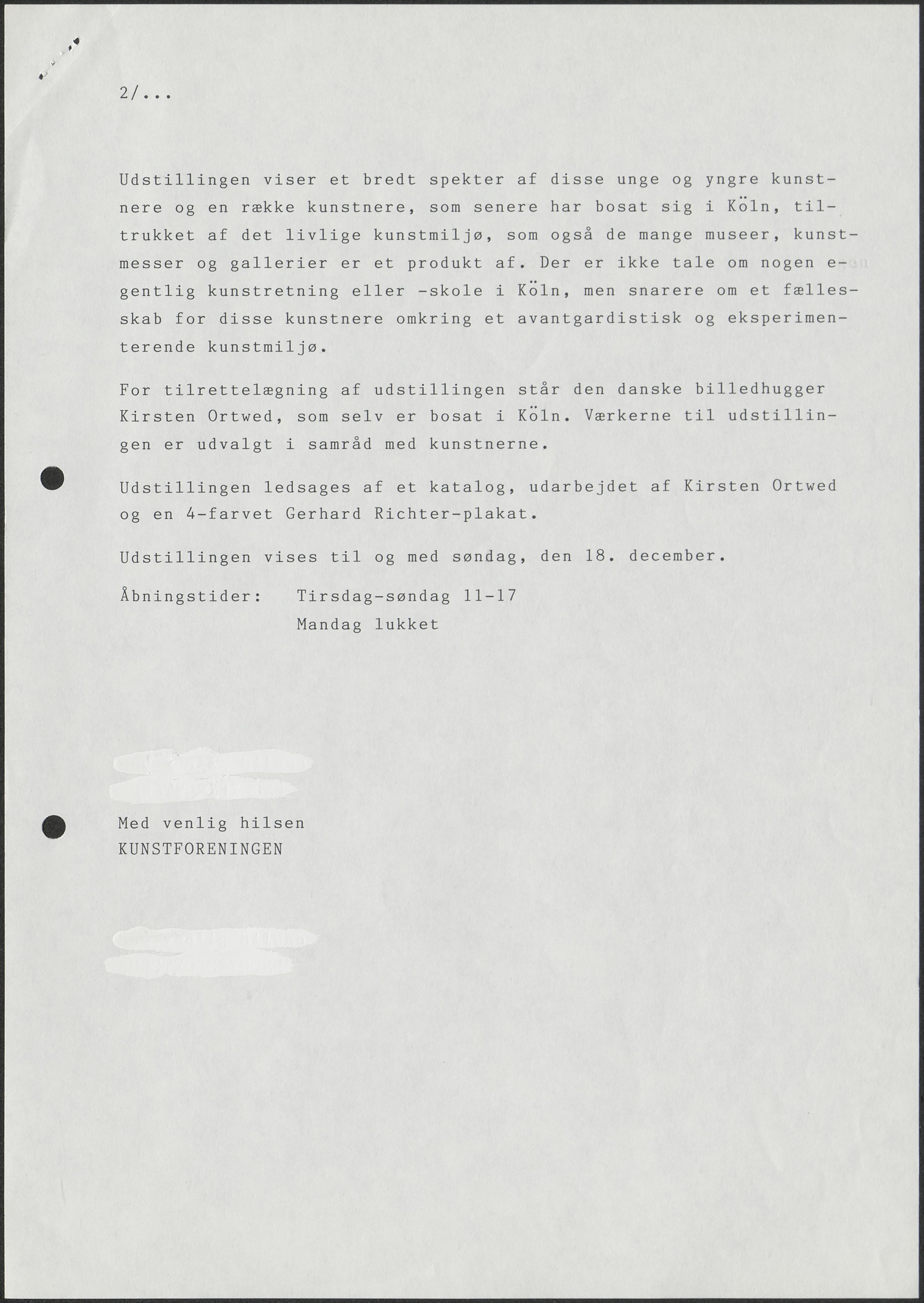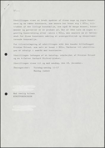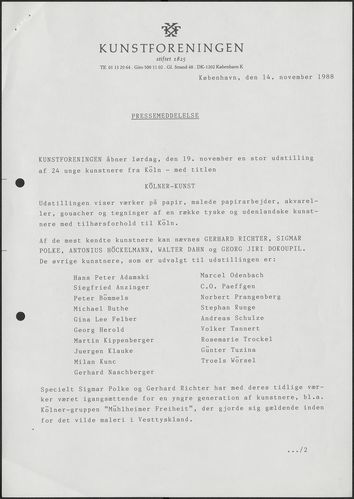 Pressemeddelelse, 1988: Kölner kunst