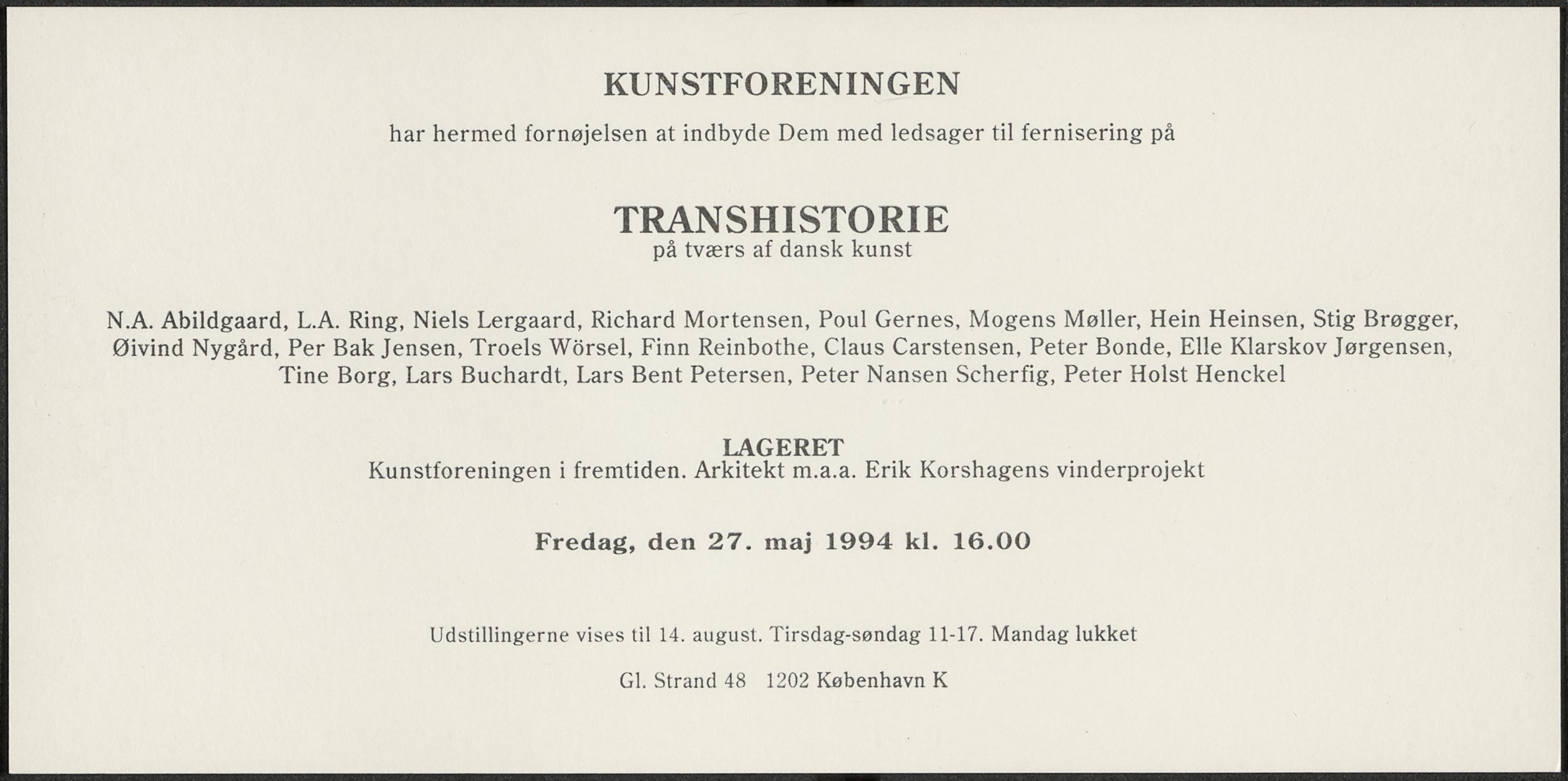 Ferniseringsinvitation, 1994: Transhistorie. På tværs af dansk kunst
